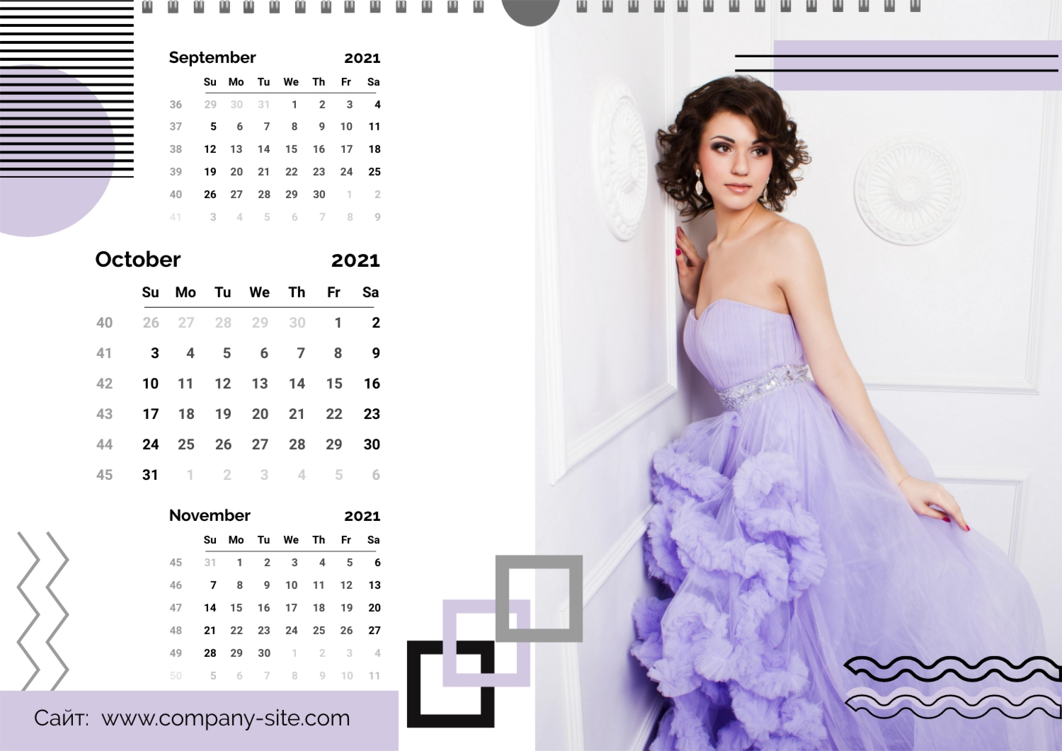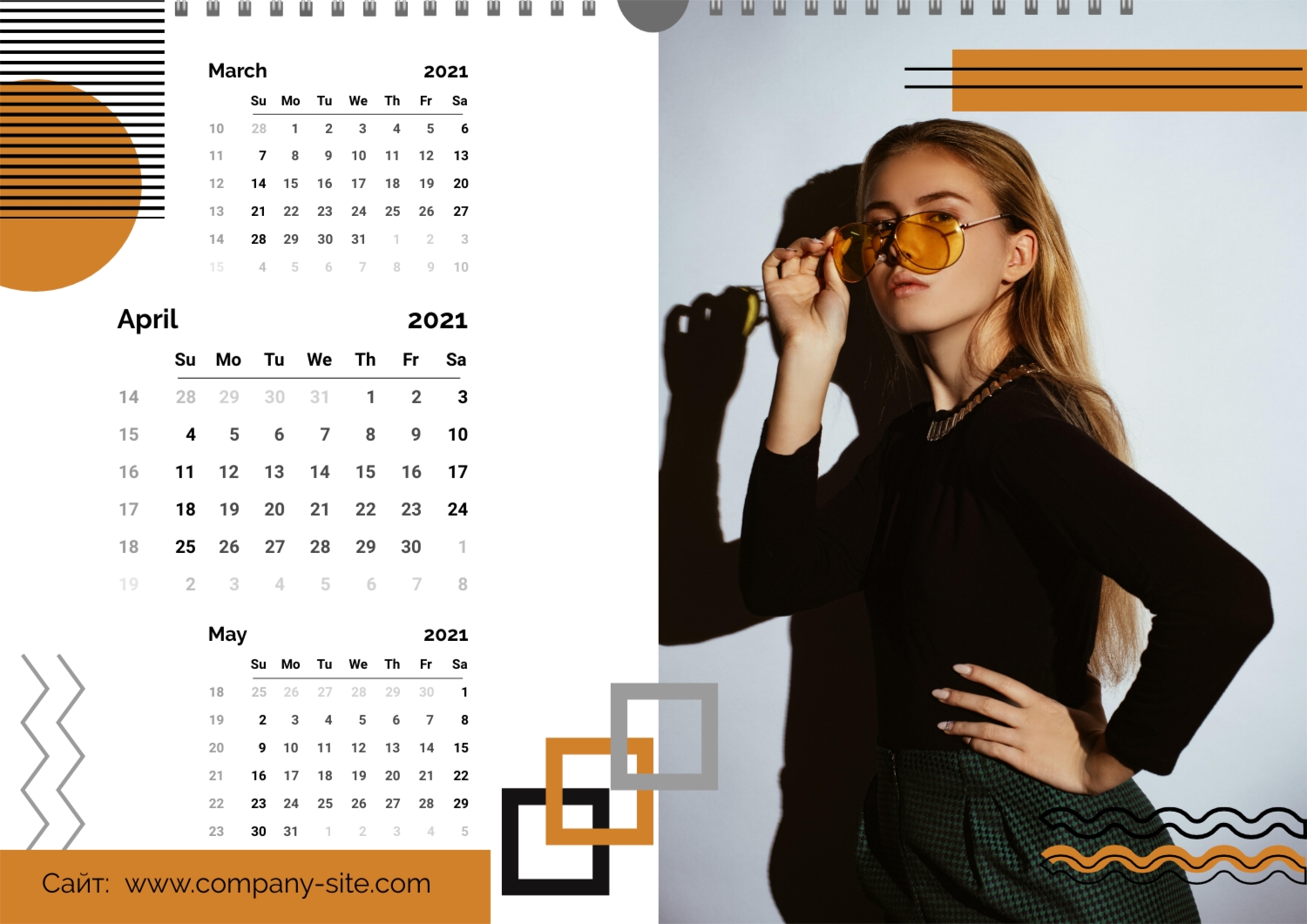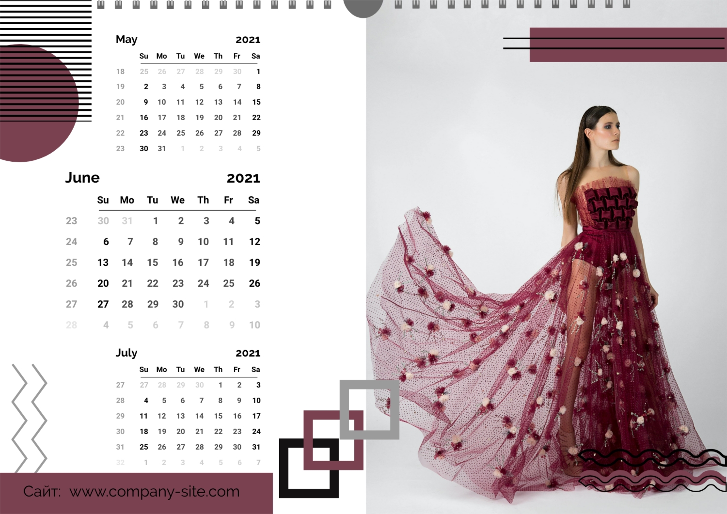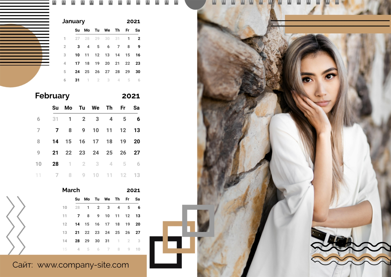 Безплатен шаблон за стенен календар-портфолио за фотостудии, фотографи и фотохудожници, с възможност за редактирането му в конструктора на календари.
