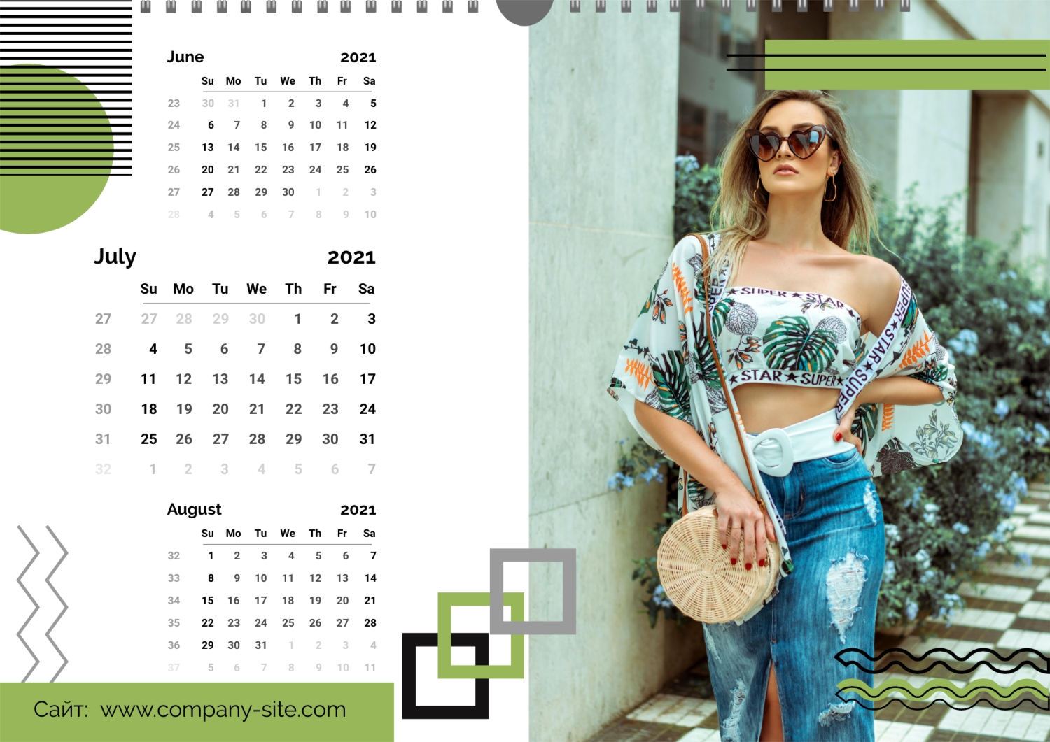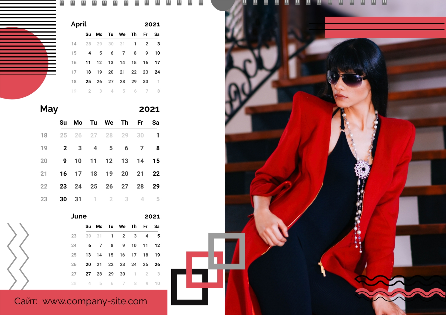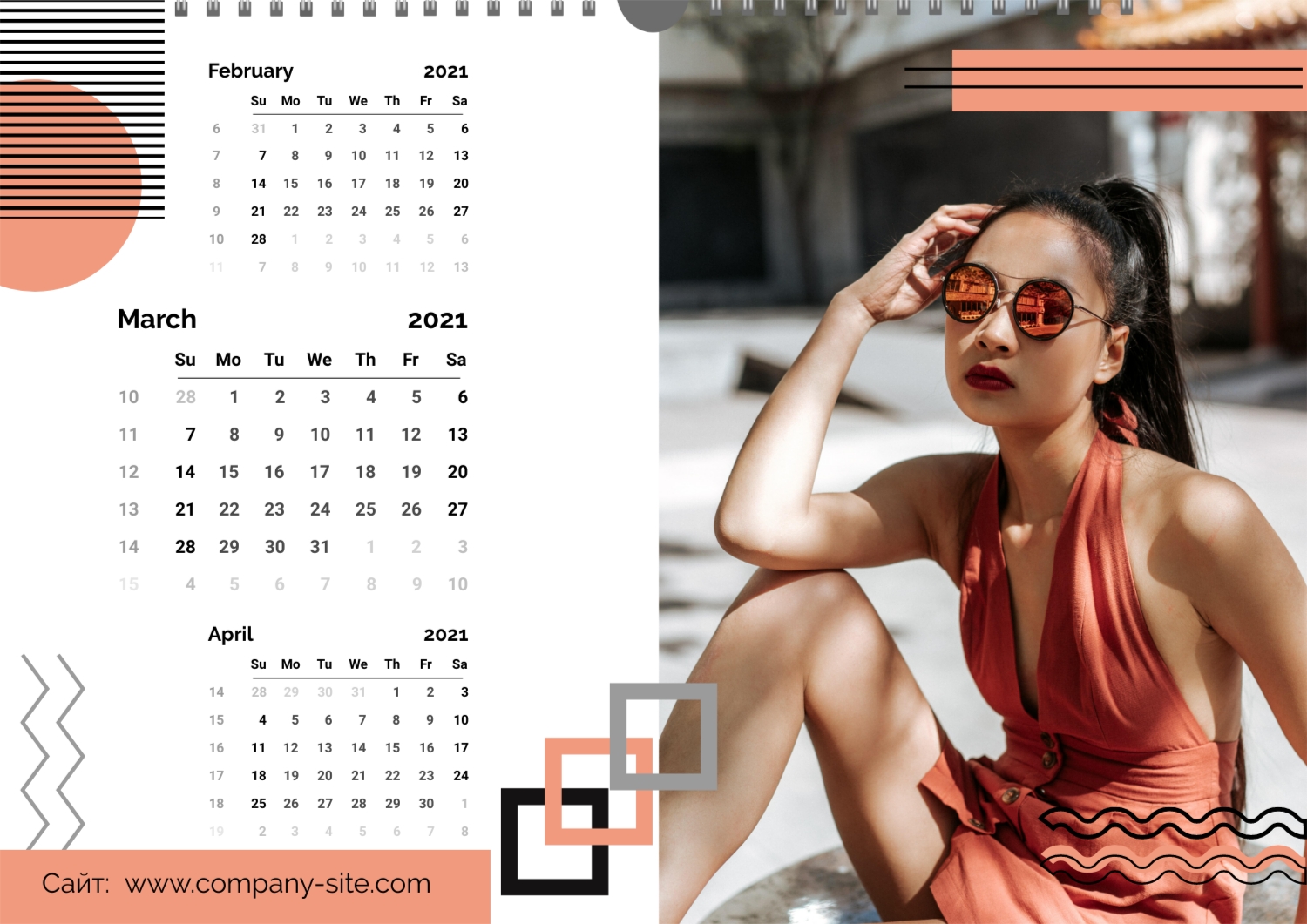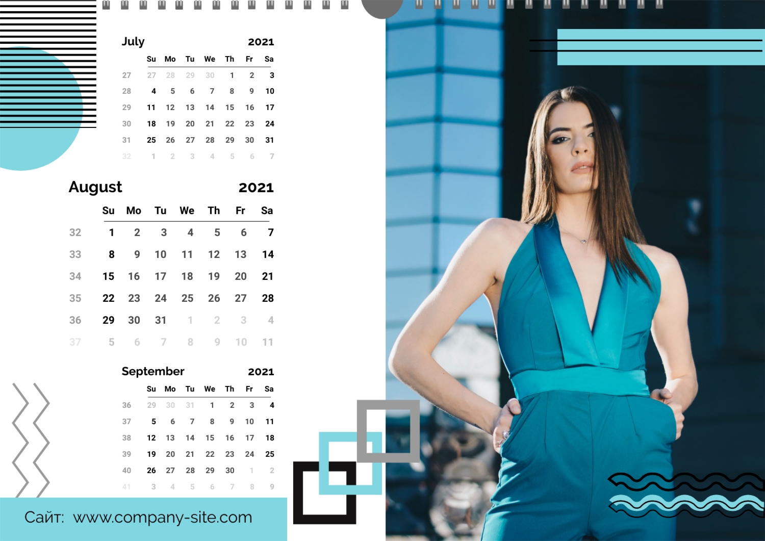 Безплатен шаблон за стенен календар-портфолио за фотостудии, фотографи и фотохудожници, с възможност за редактирането му в конструктора на календари.