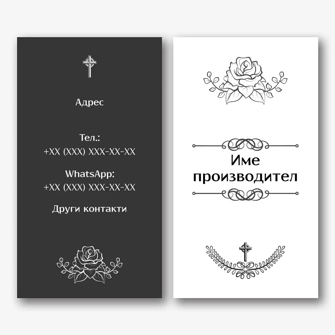 Безплатен шаблон за визитка за производител на надгробни паметници, погребални домове. Създайте оформление със собствените си ръце в дизайнера на визитки.