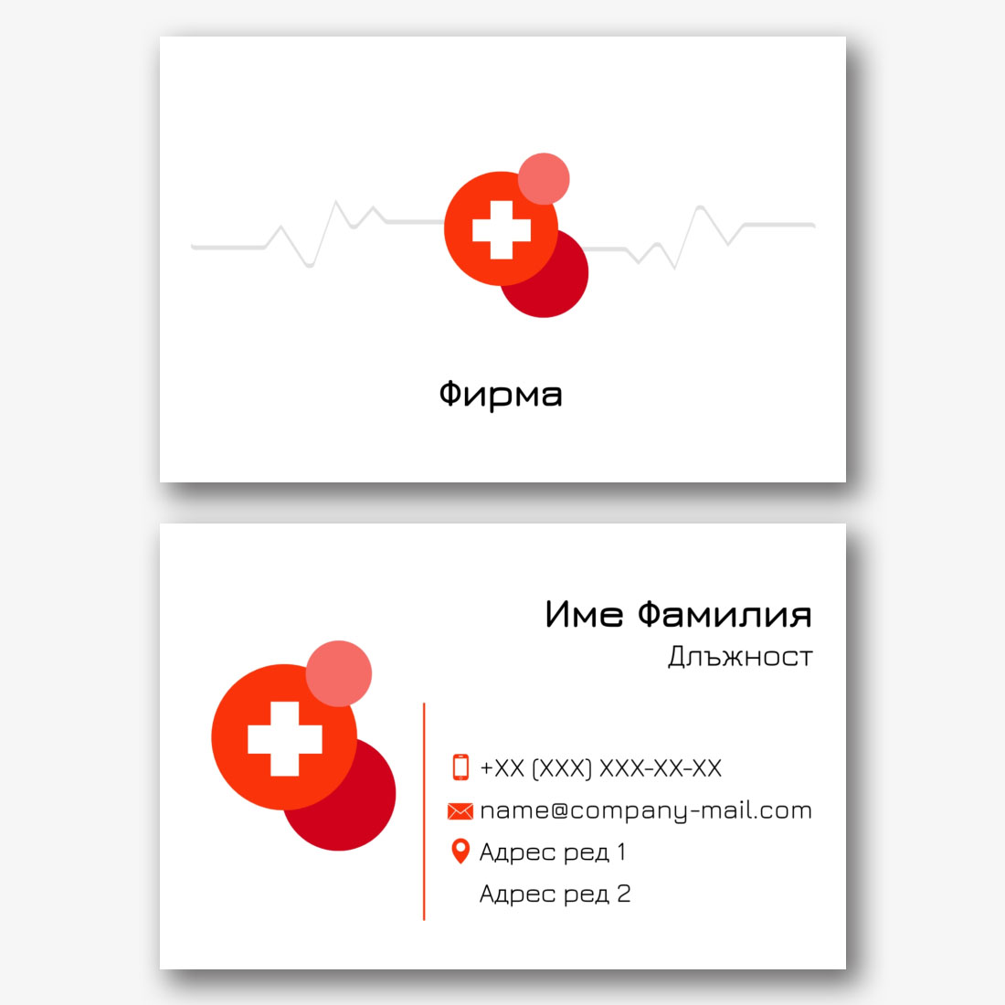 Безплатен шаблон за визитка на медицински център, медицински персонал, лекари, клиники. Създайте оформление със собствените си ръце в дизайнера на визитки.