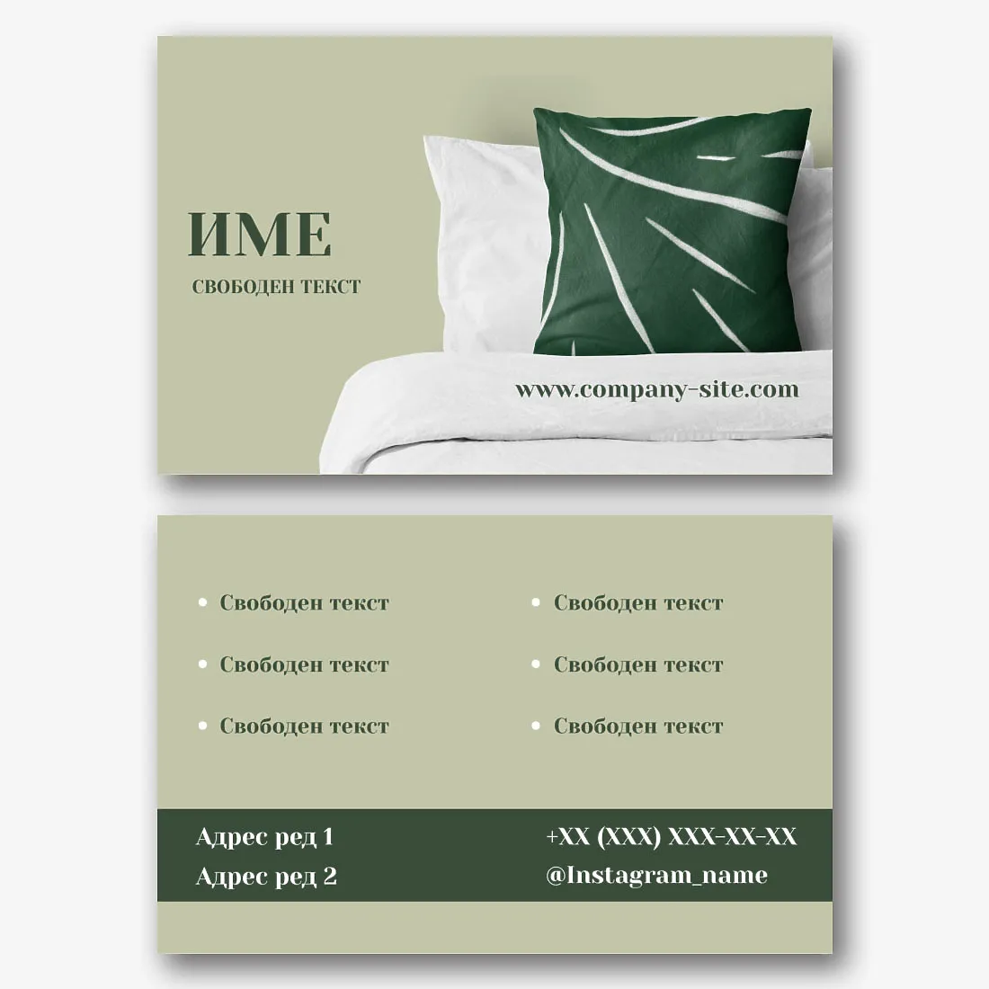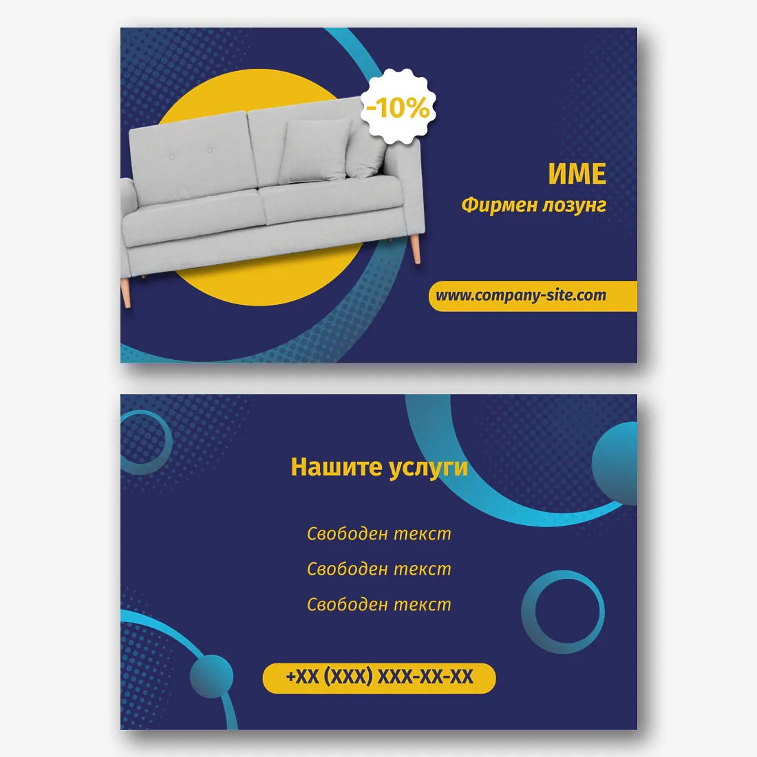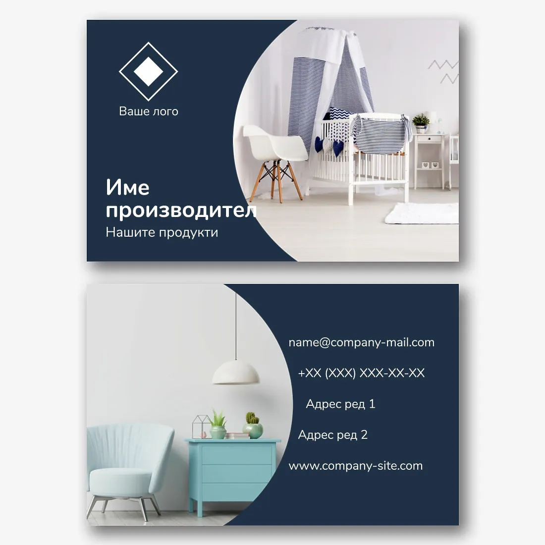 Безплатен шаблон за визитка на интериорен дизайнер, дизайнерска агенция, дизайнери. Създайте оформление със собствените си ръце в дизайнера на визитки.