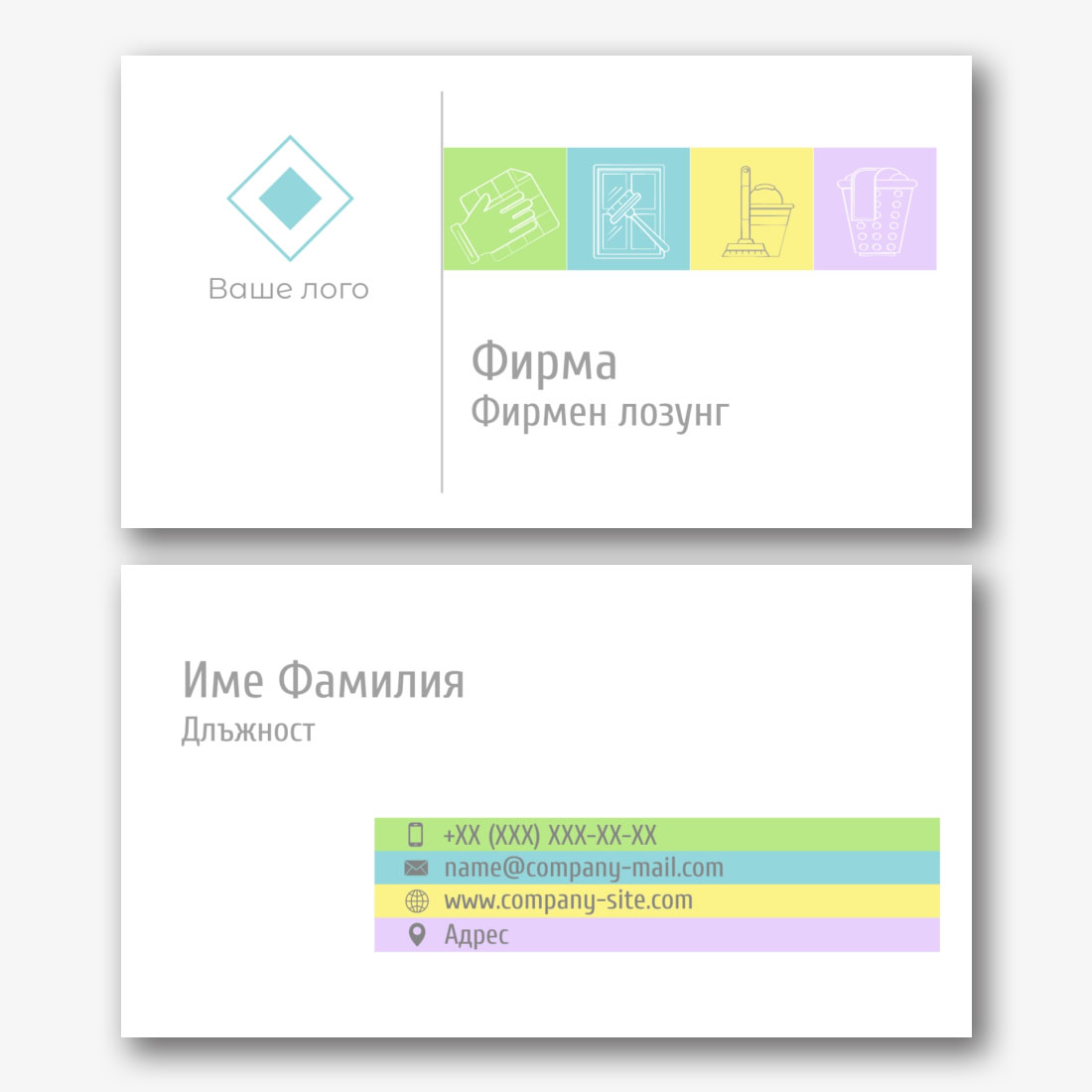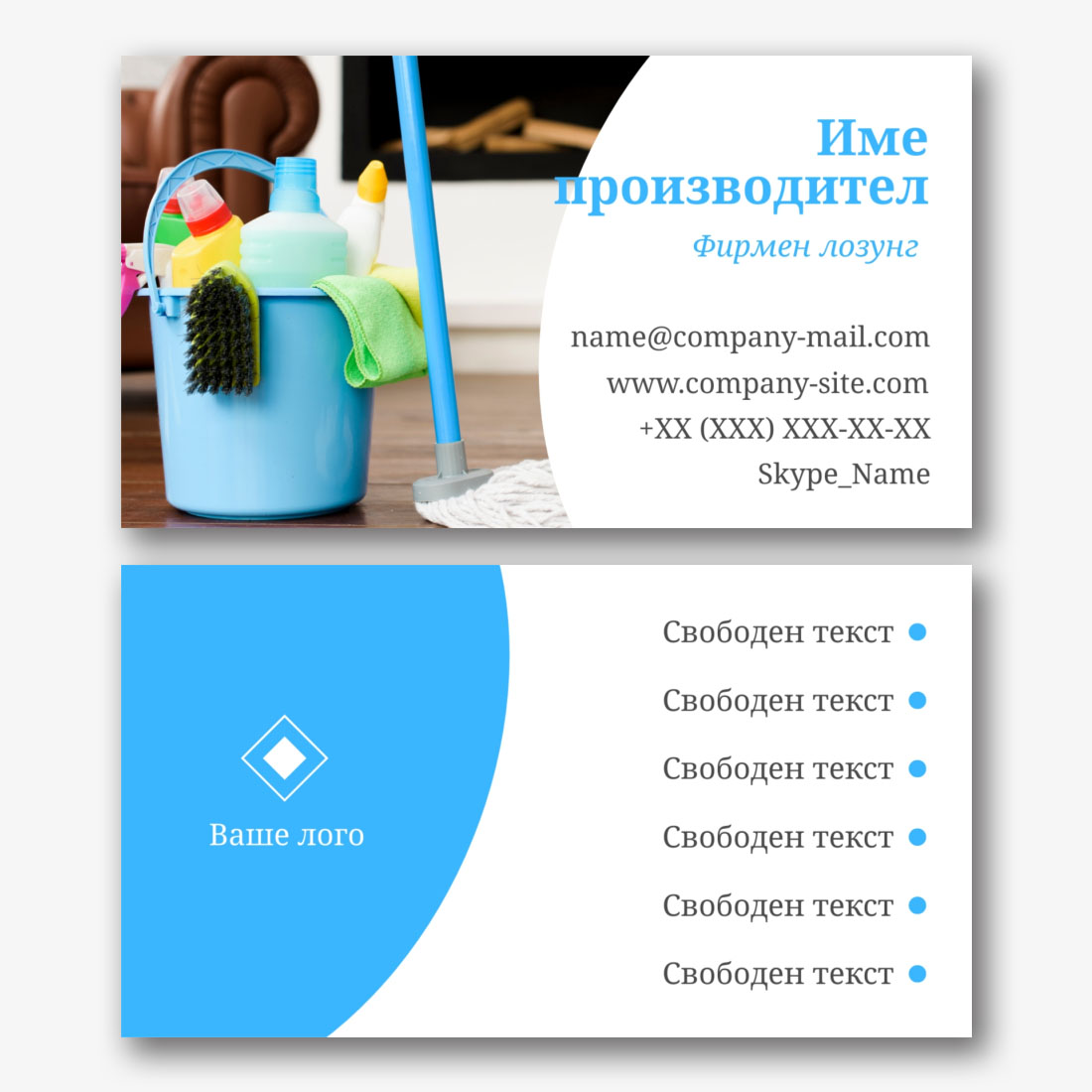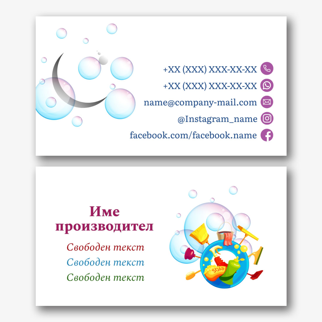 Безплатен шаблон за визитка на фирма за почистване, почистващ препарат, Мениджър за почистване. Създайте оформление със собствените си ръце в дизайнера на визитки.