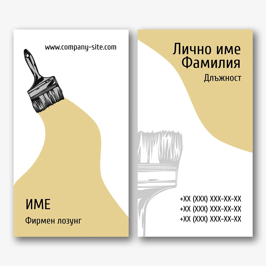 Безплатен шаблон за визитка на художник, екип от художници, бояджийска работилница. Създайте оформление със собствените си ръце в дизайнера на визитки.