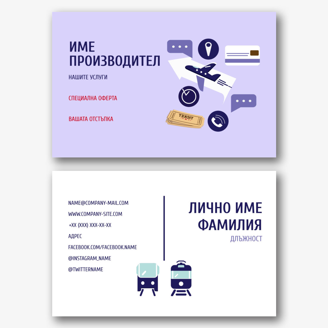 Безплатен шаблон за визитка за авиокомпания, туроператор, туристически мениджър. Създайте оформление със собствените си ръце в дизайнера на визитки.