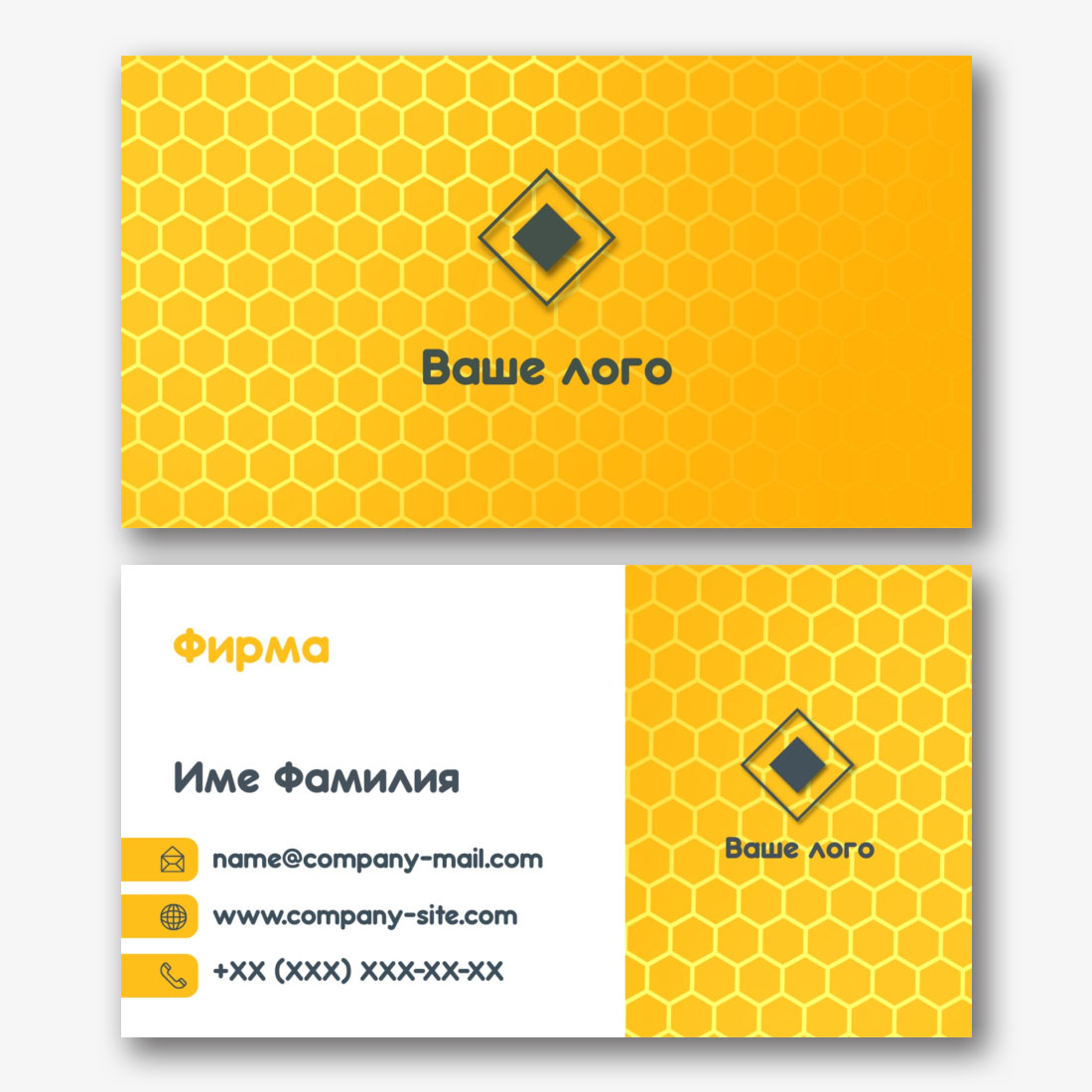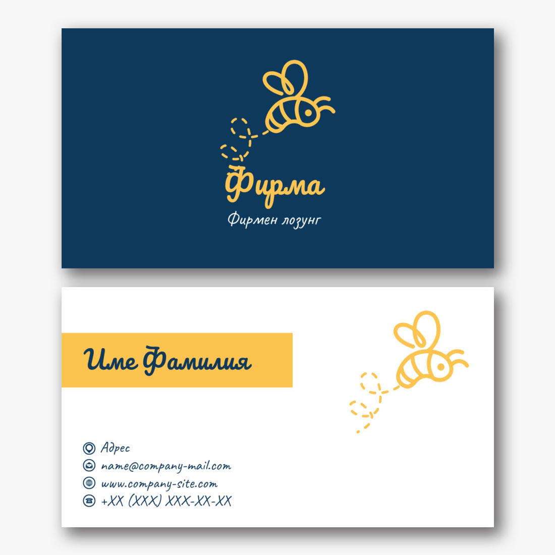 Безплатен шаблон за визитка на пчелар, продавач на мед, доставчик на мед, Пчелина. Създайте оформление със собствените си ръце в дизайнера на визитки.