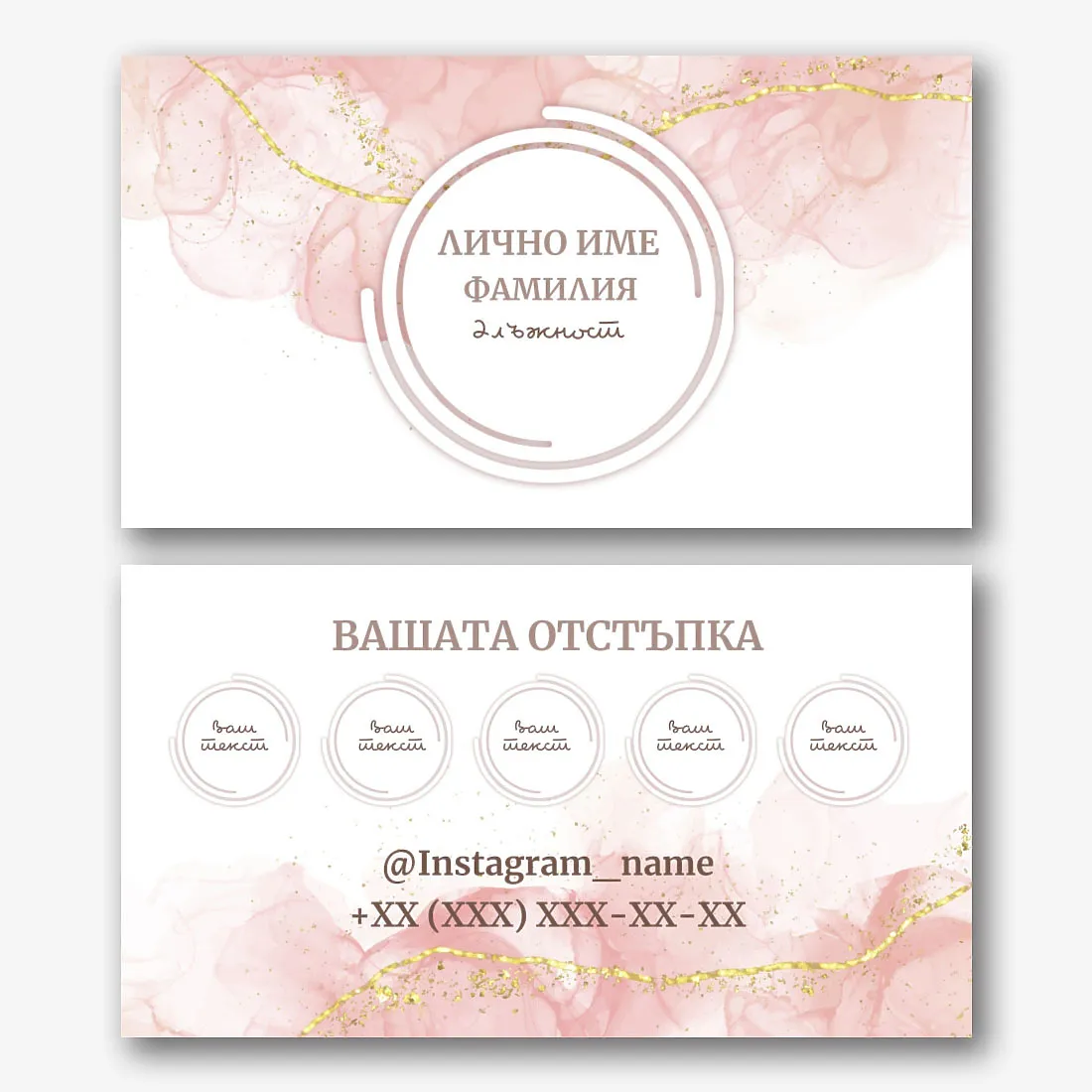 Безплатен шаблон за абстрактна визитка за гримьор. Създайте оформление на визитка със собствените си ръце в дизайнера на визитки.