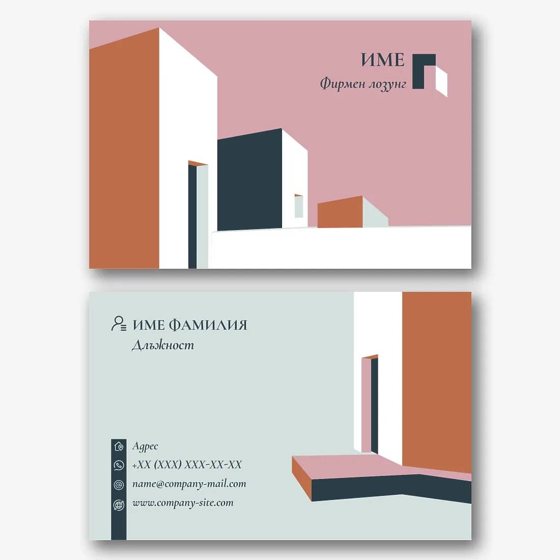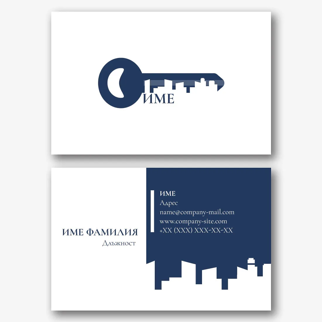 Безплатен шаблон за визитка на разработчик, брокер, Агенция за недвижими имоти. Създайте оформление със собствените си ръце в дизайнера на визитки.