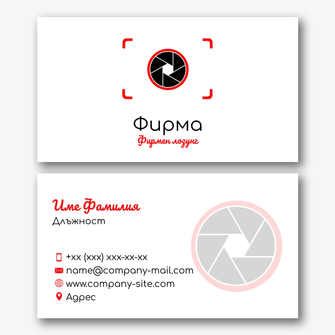 Безплатен шаблон за визитка за фотограф или Фотошкола. Създайте оформление със собствените си ръце в дизайнера на визитки.