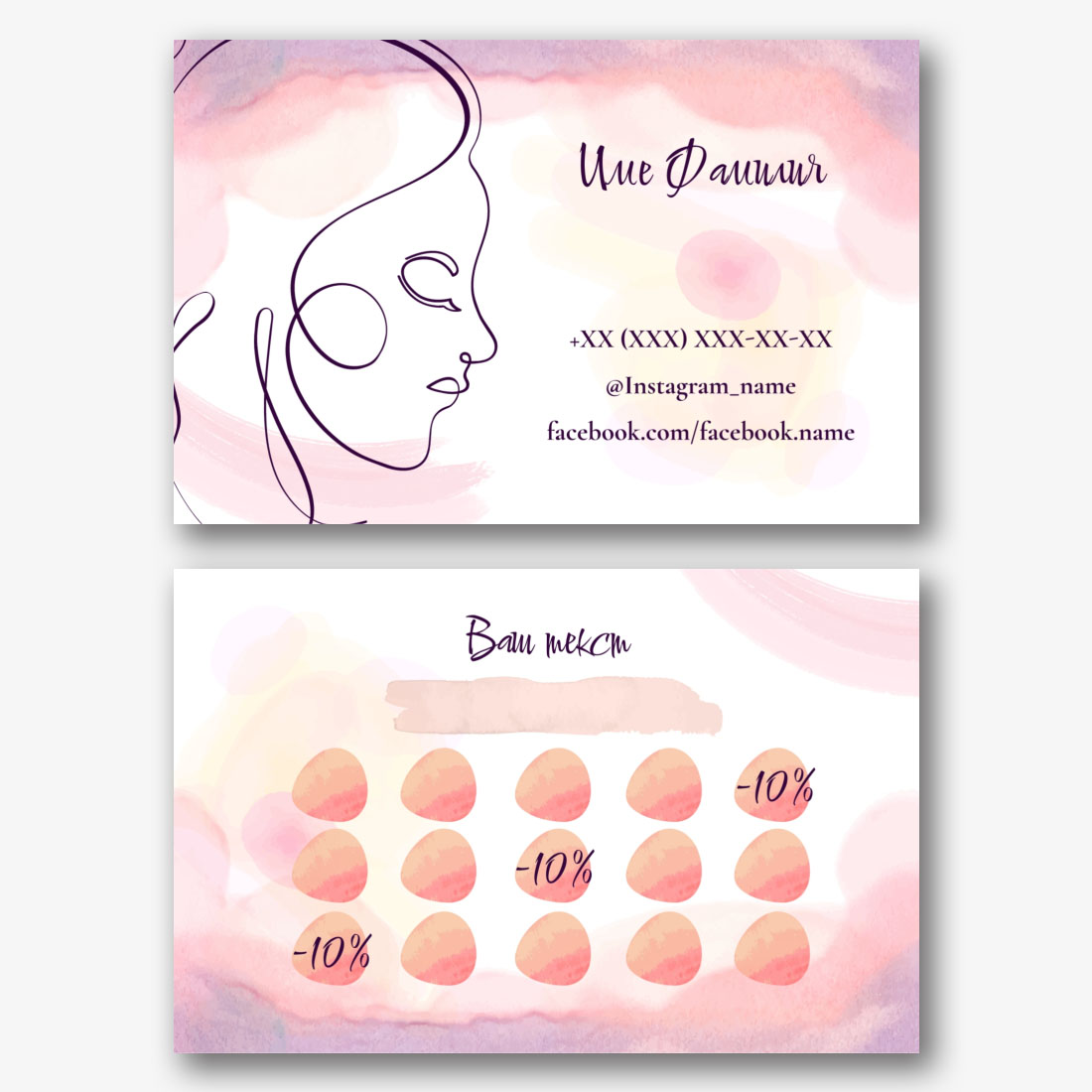 Безплатен шаблон за абстрактна визитка за гримьор. Създайте оформление на визитка със собствените си ръце в дизайнера на визитки.