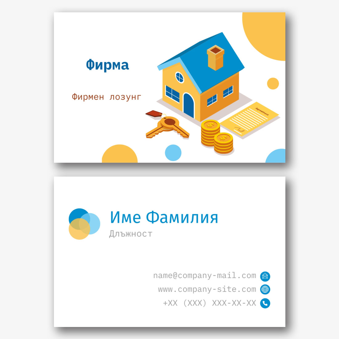 Безплатен шаблон за визитка на Агенция за недвижими имоти, брокер, брокер, разработчик. Създайте оформление със собствените си ръце в дизайнера на визитки.