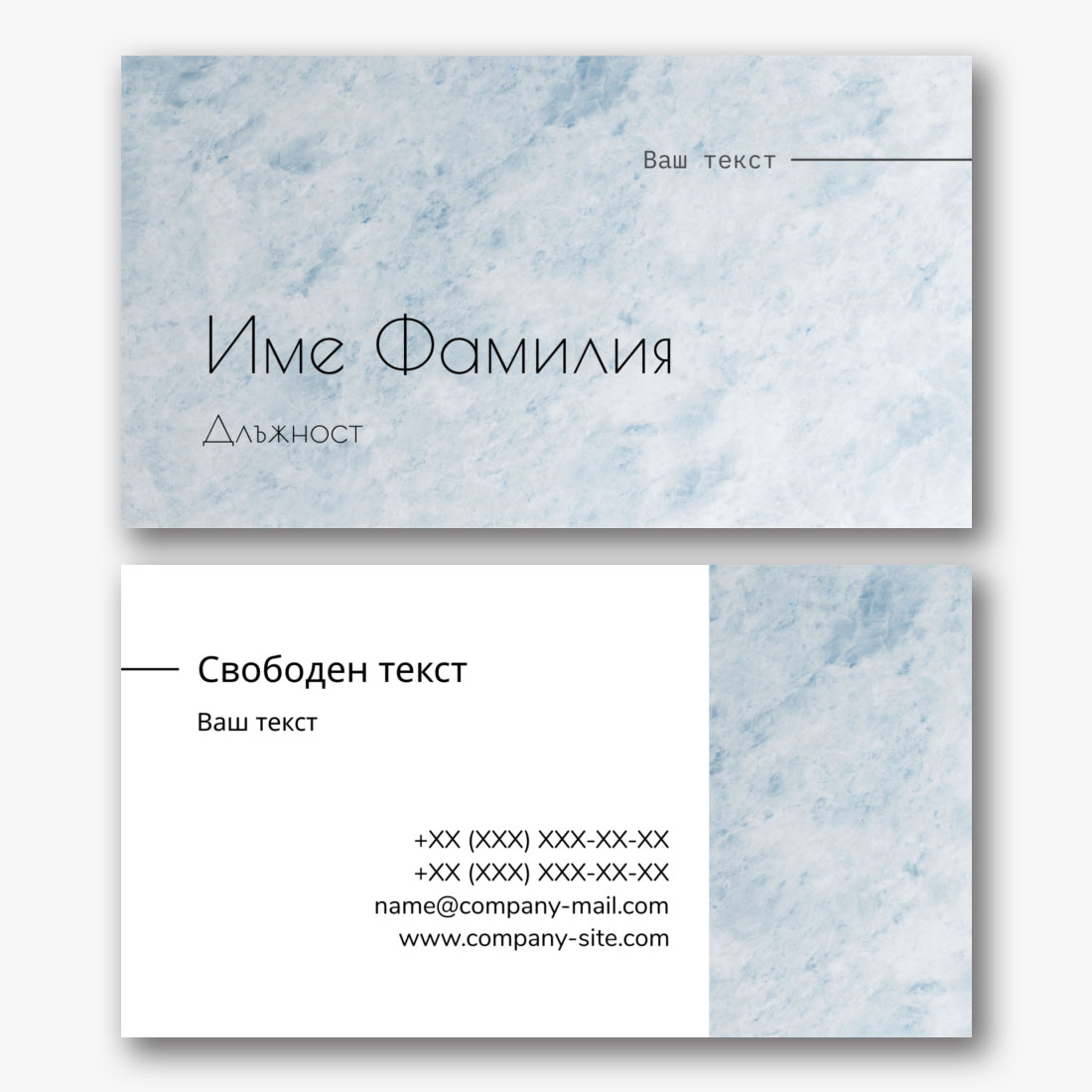 Безплатен шаблон за строга, сбита, класическа, проста визитка. Създайте оформление със собствените си ръце в дизайнера на визитки.
