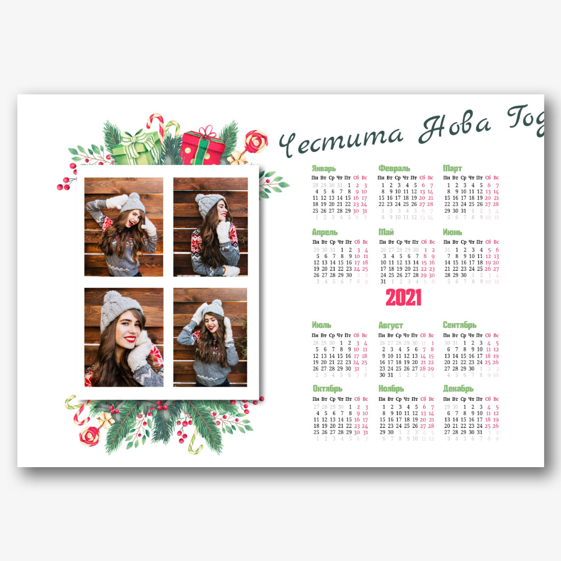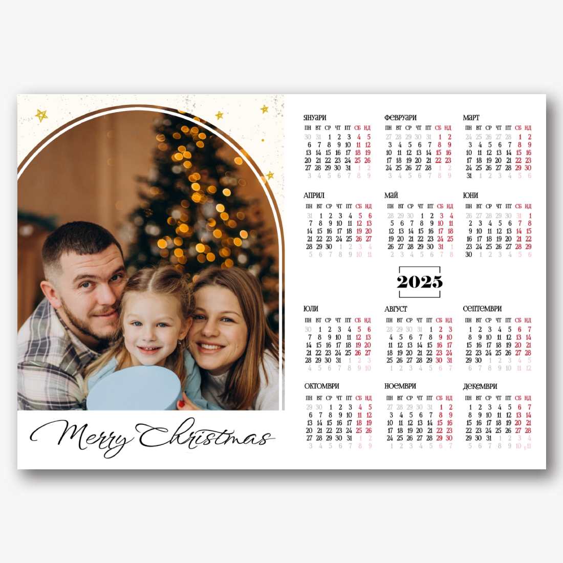 Безплатен шаблон за новогодишен семеен календар-плакат онлайн със запомнящи се моменти. Създайте оформление "направи си сам" в онлайн конструктора на календари.