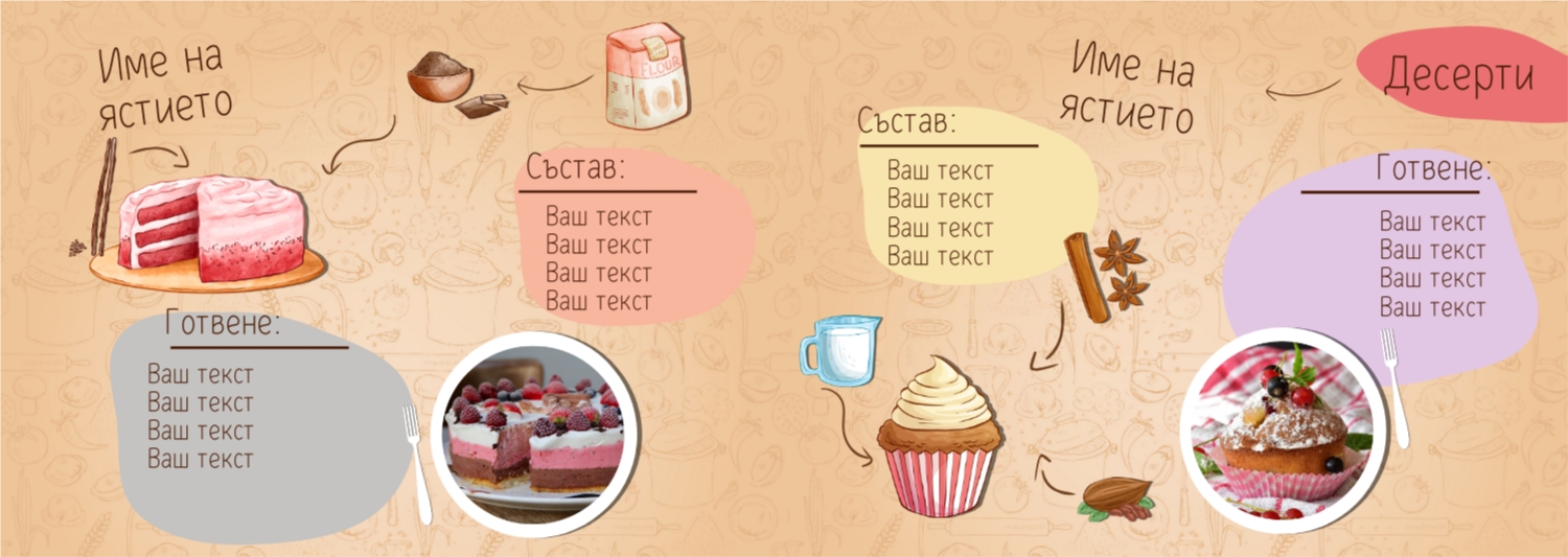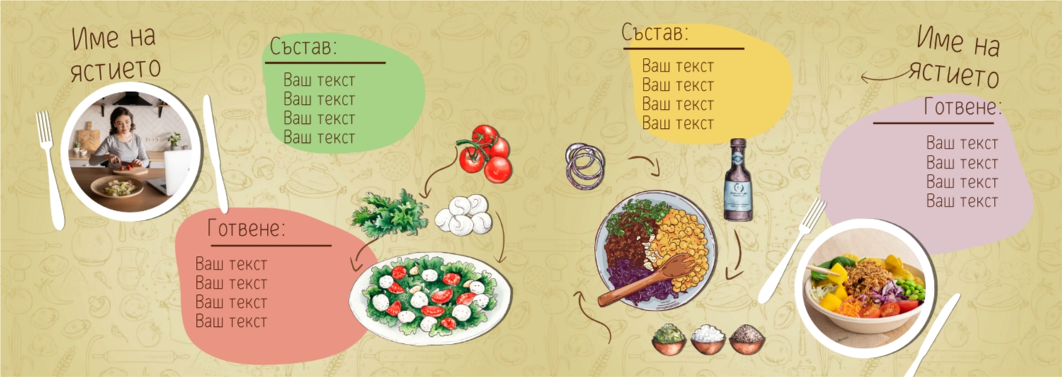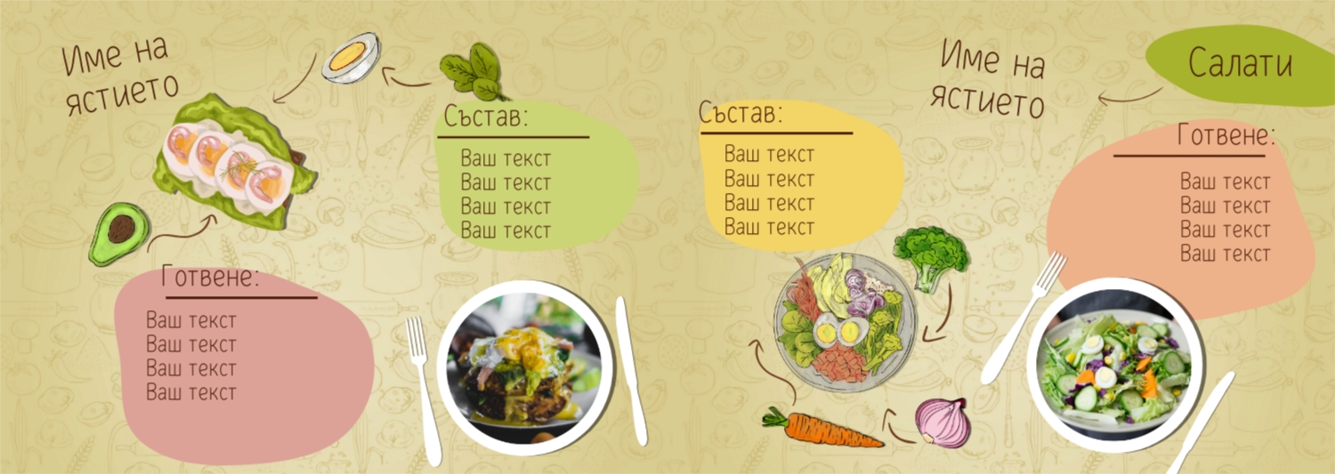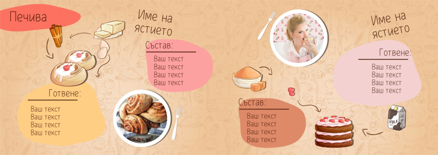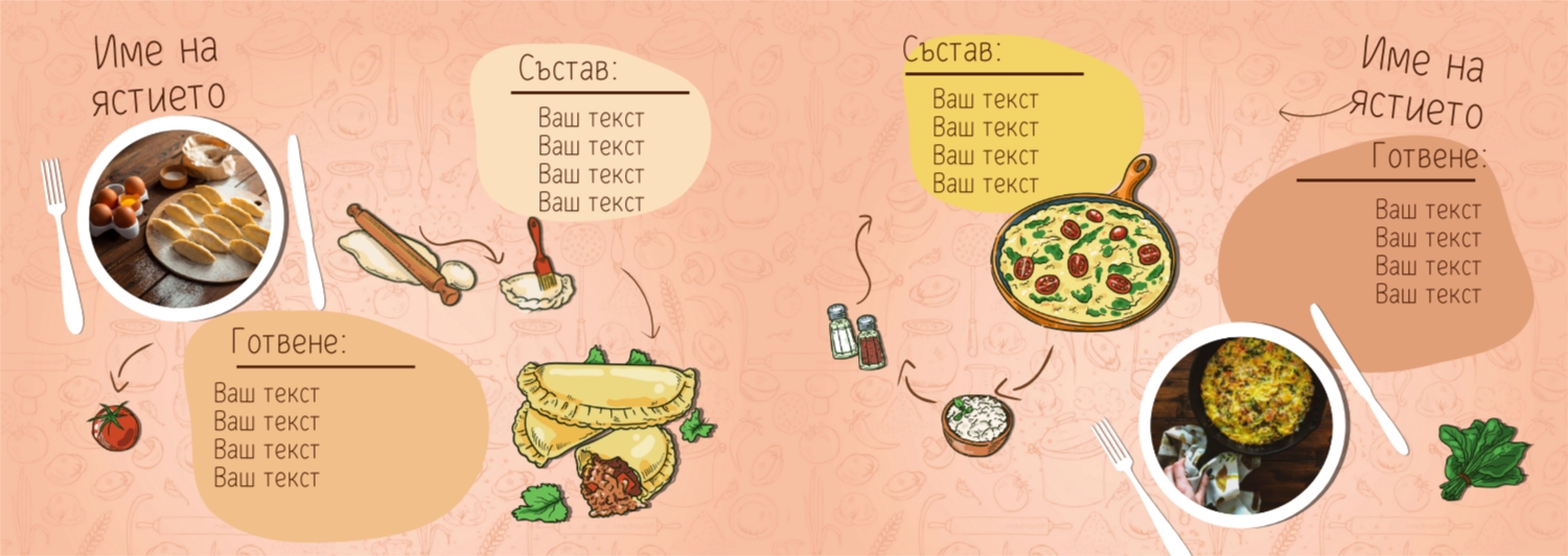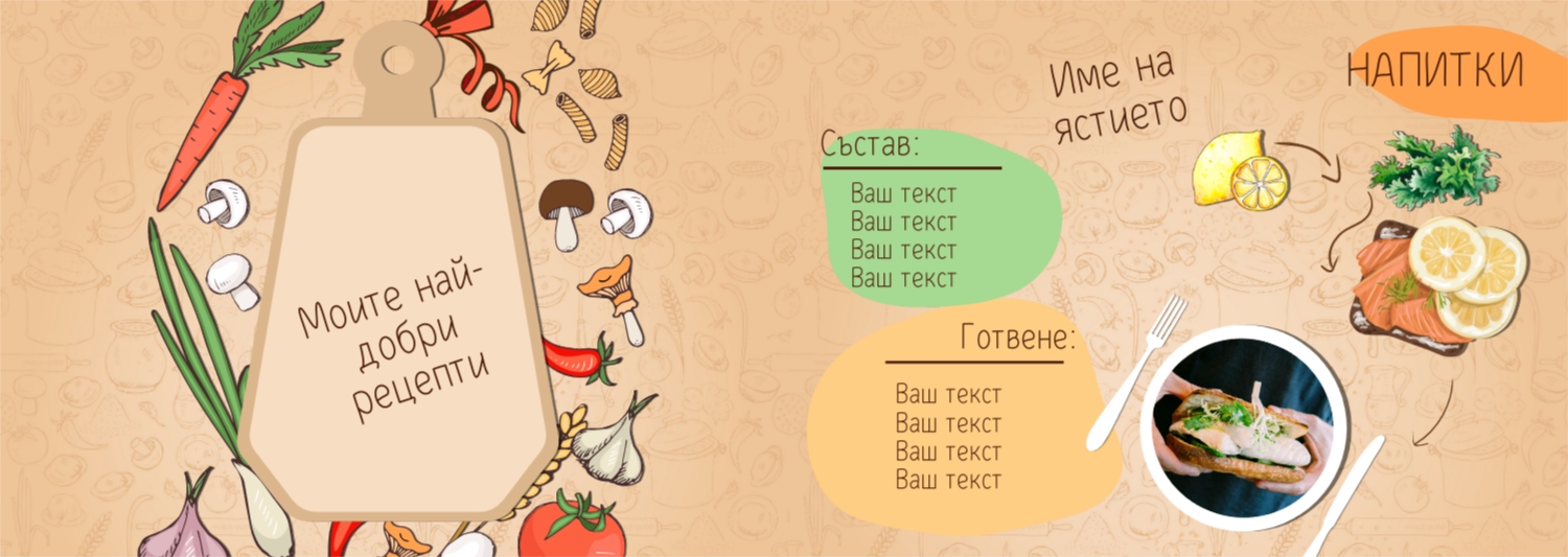 Безплатен шаблон за фотокнига на гигантски рецепти. Създайте оформление със собствените си ръце в онлайн конструктора на фотокниги.