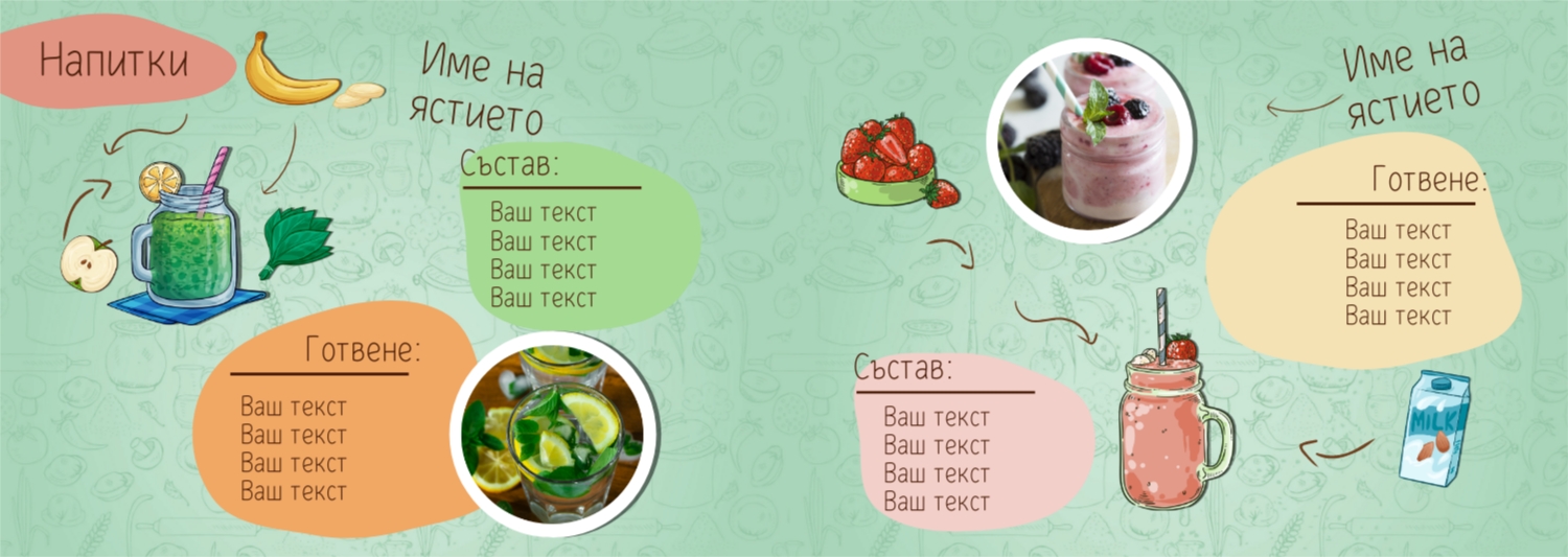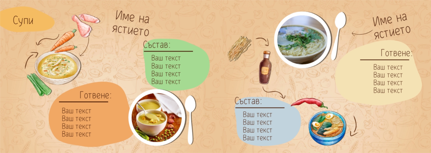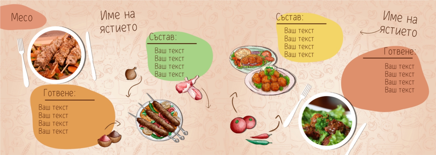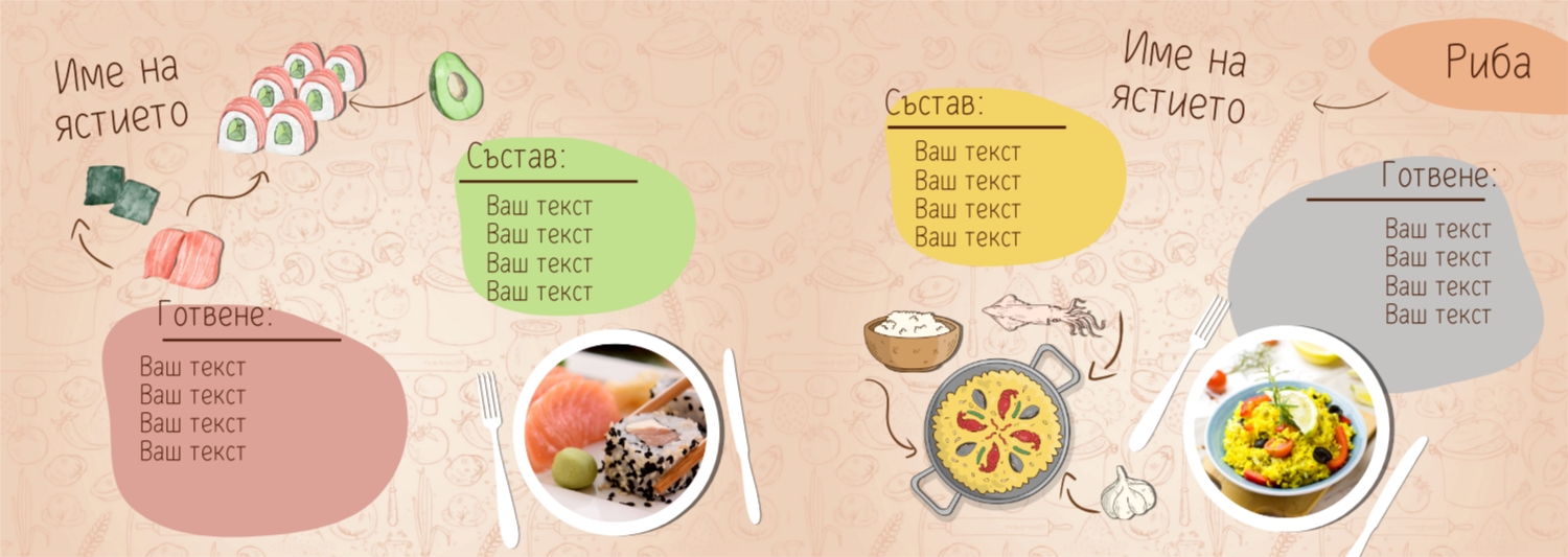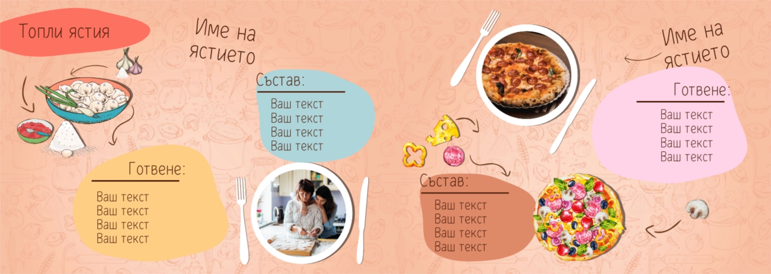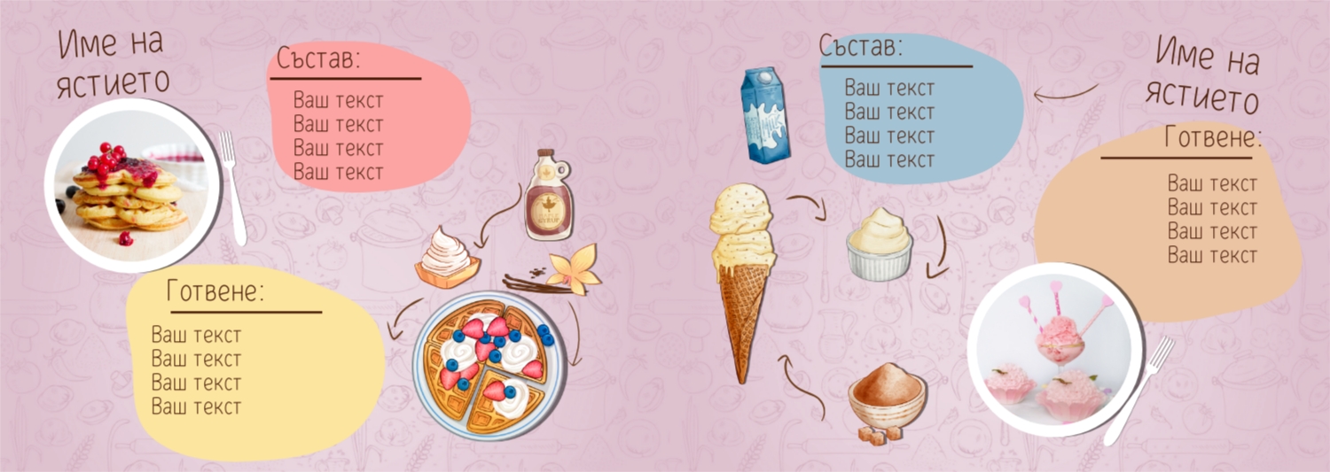 Безплатен шаблон за фотокнига на гигантски рецепти. Създайте оформление със собствените си ръце в онлайн конструктора на фотокниги.