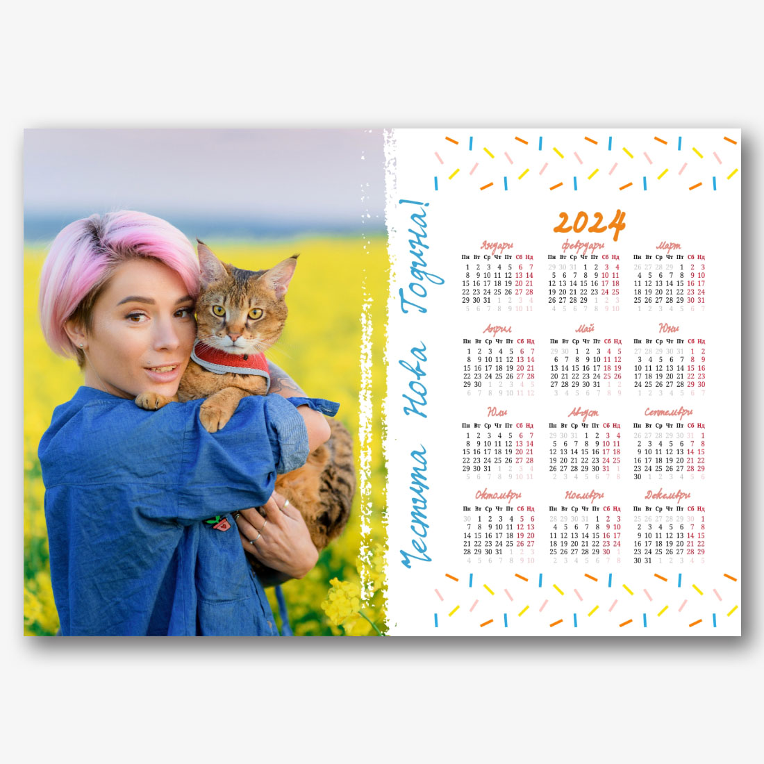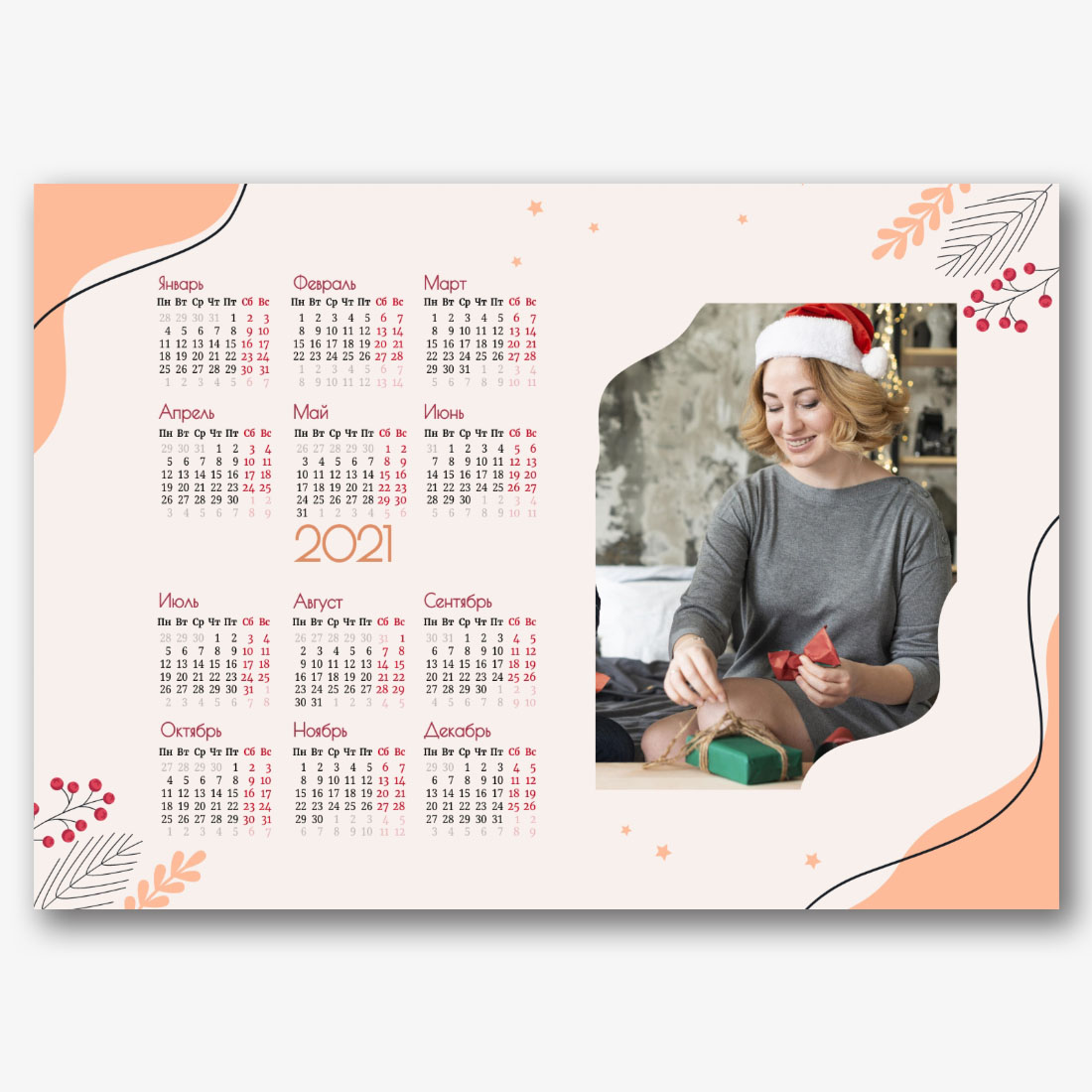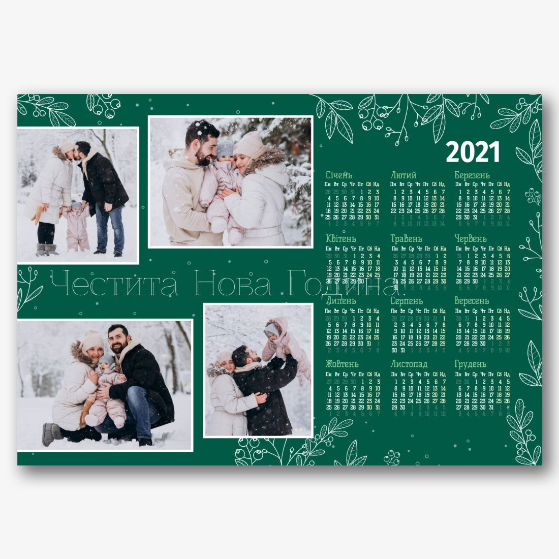 Безплатен шаблон за новогодишен календар-плакат онлайн със запомнящи се моменти от празника. Създайте оформление "направи си сам" в онлайн конструктора на календари.