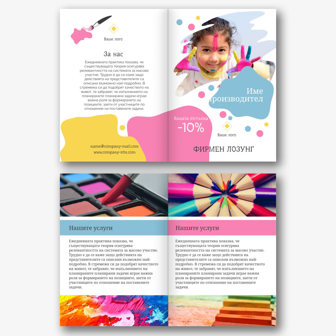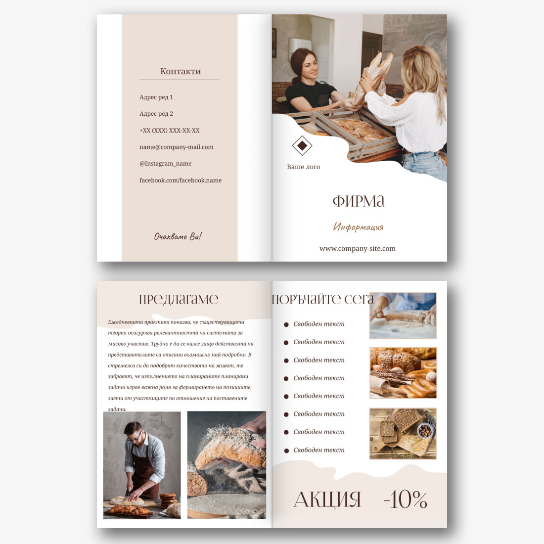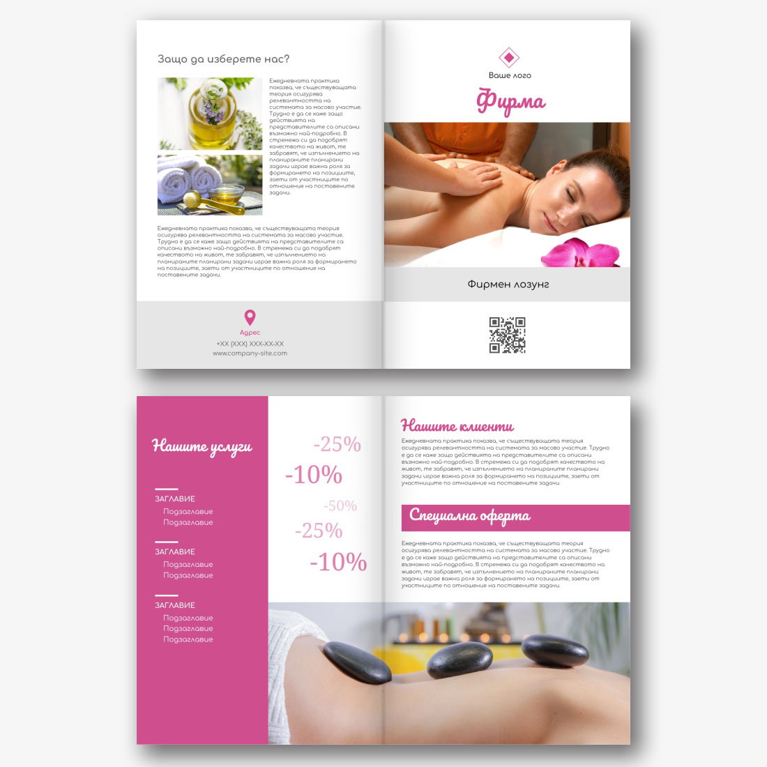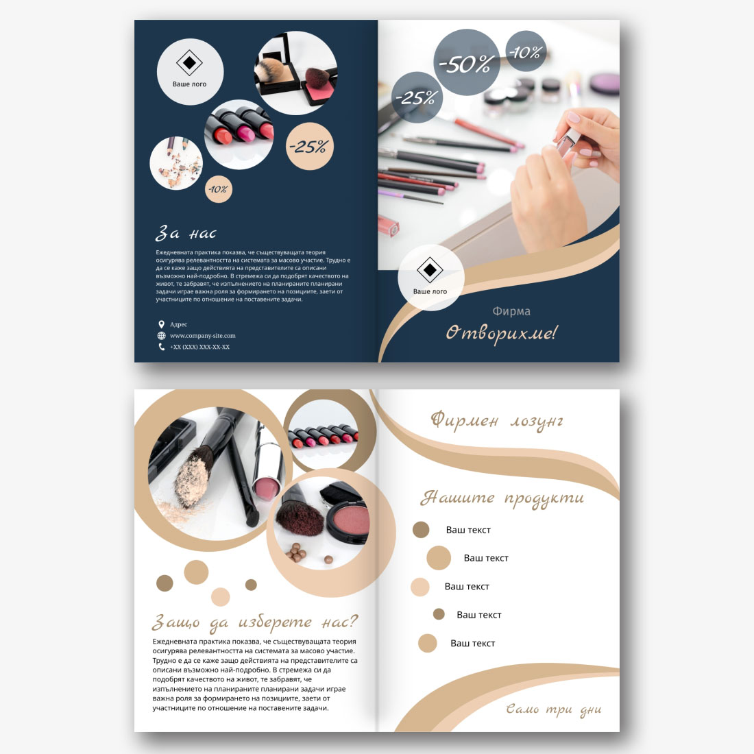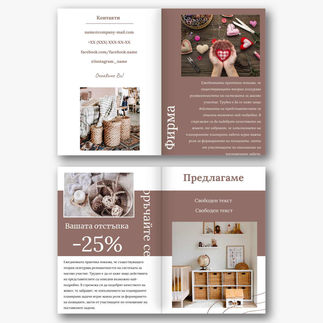 Безплатен шаблон за промоционална книжка онлайн магазин за цветя, услуги на цветар. Създайте оформление на брошура "направи си сам" в онлайн конструктора на брошури.