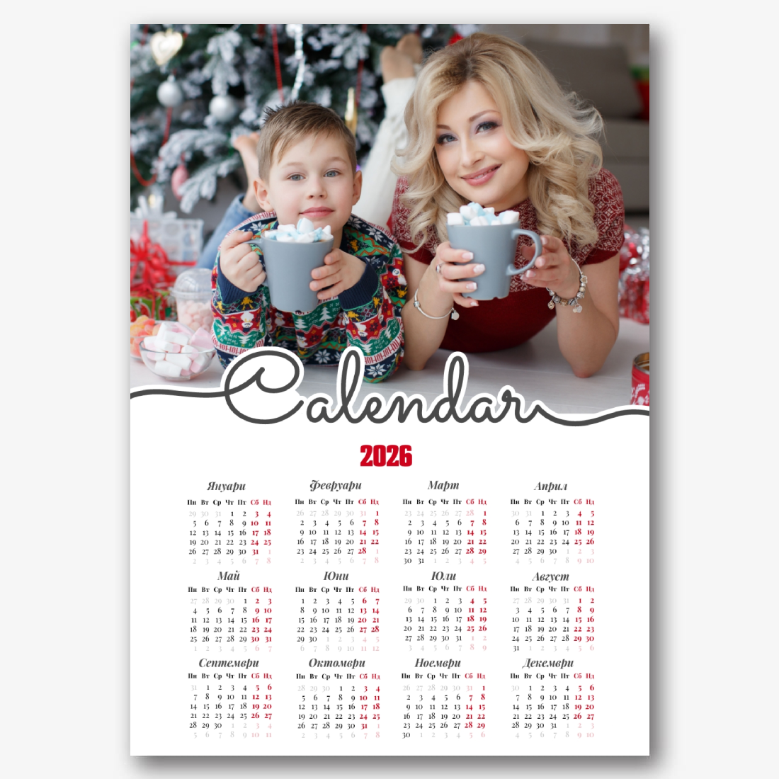 Безплатен шаблон за семеен календар на плакати онлайн със запомнящи се моменти. Създайте оформление "направи си сам" в онлайн конструктора на календари.