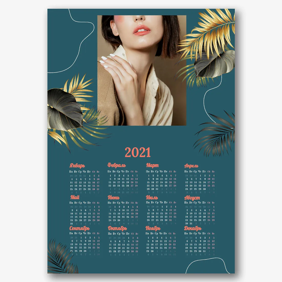Безплатен шаблон за календар на плакати онлайн за услуга за доставка. Създайте оформление със собствените си ръце в конструктора на календари.