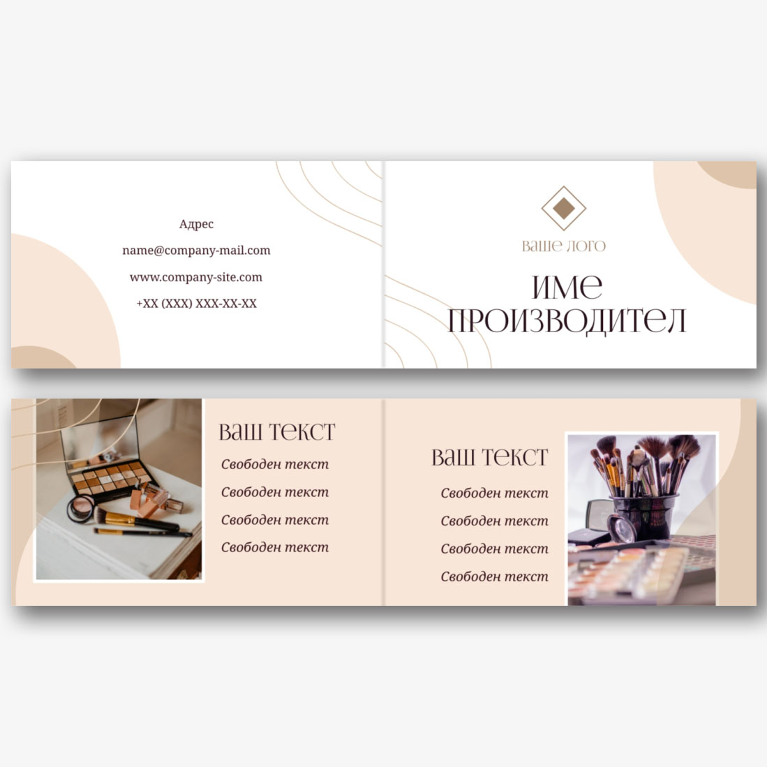 Безплатен шаблон за двойна визитка за козметичен център, козметик, студио за красота. Създайте оформление със собствените си ръце в дизайнера на визитки.