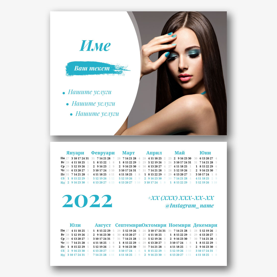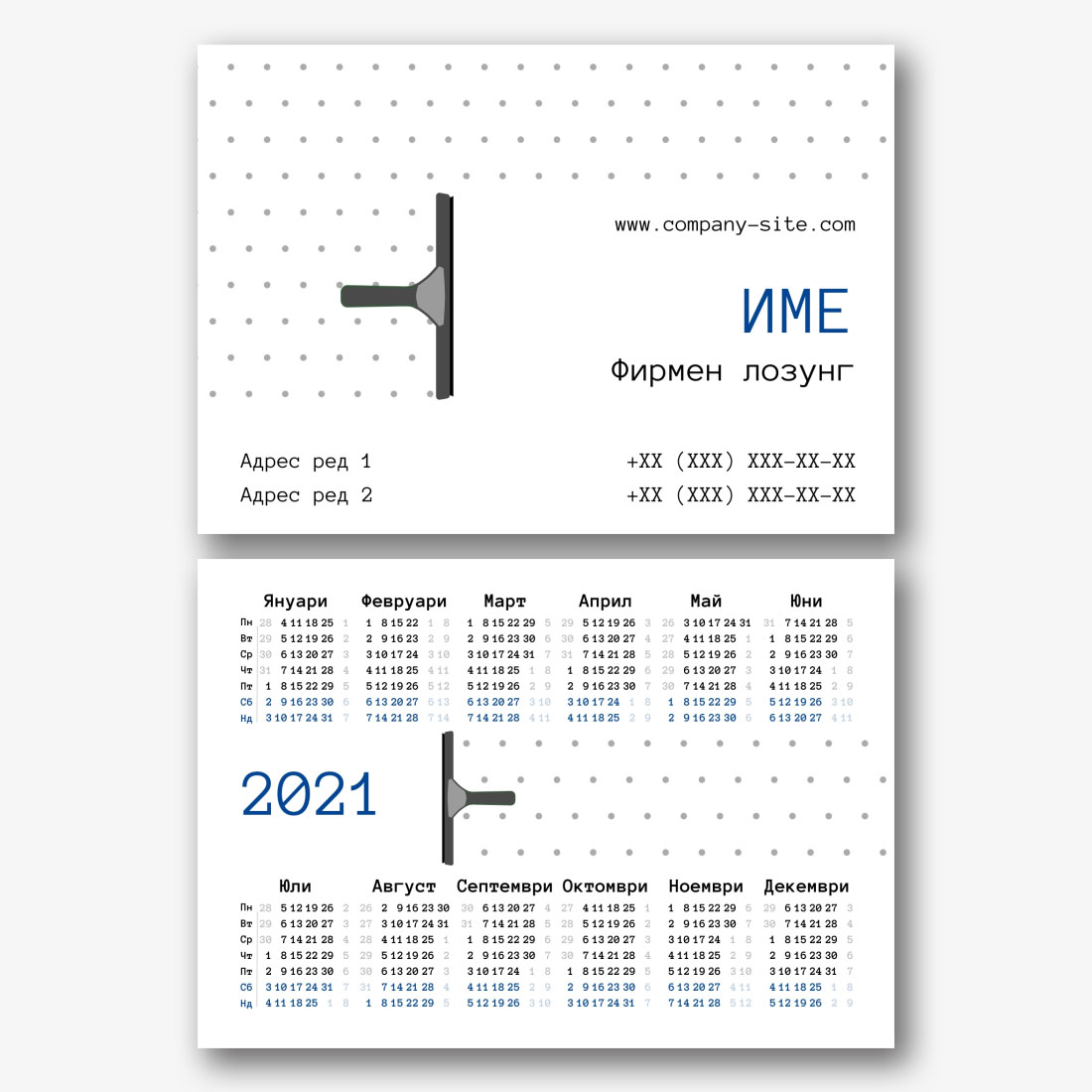 Безплатен онлайн шаблон за джобен календар за реклама на фирма за почистване. Създайте оформление със собствените си ръце в конструктора на календари.
