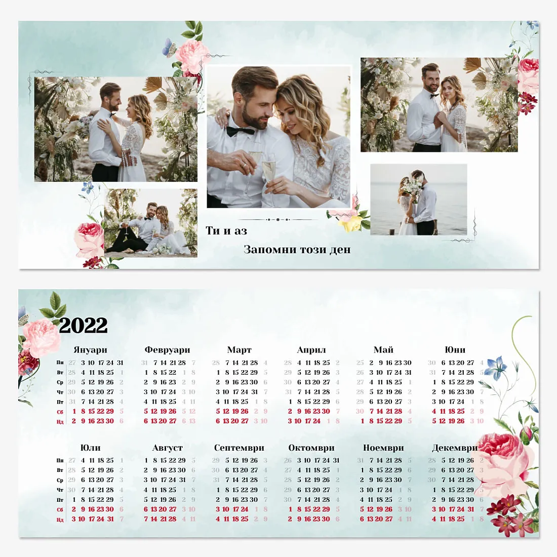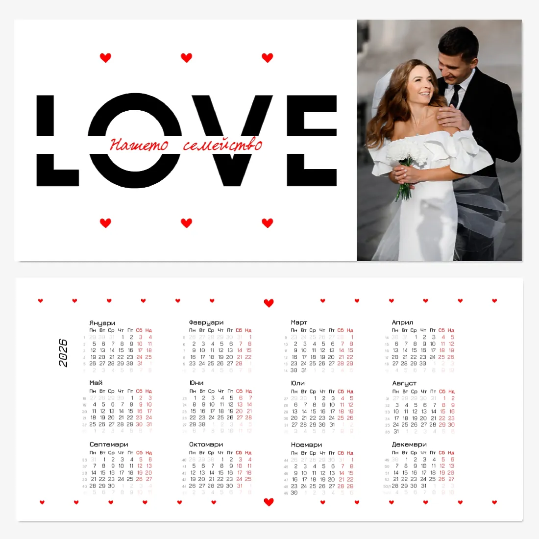 Безплатен шаблон за настолен сватбен календар-къща. Създайте оформление със собствените си ръце в конструктора на календари.