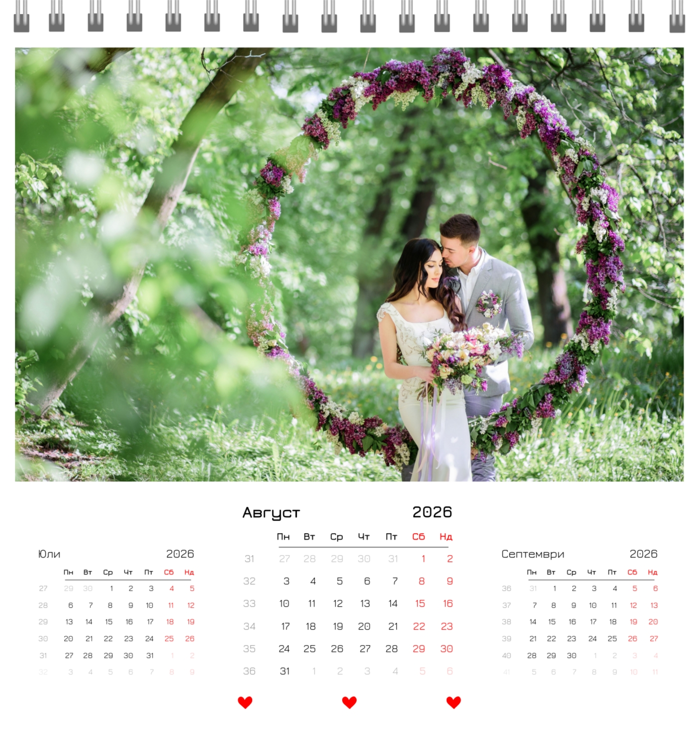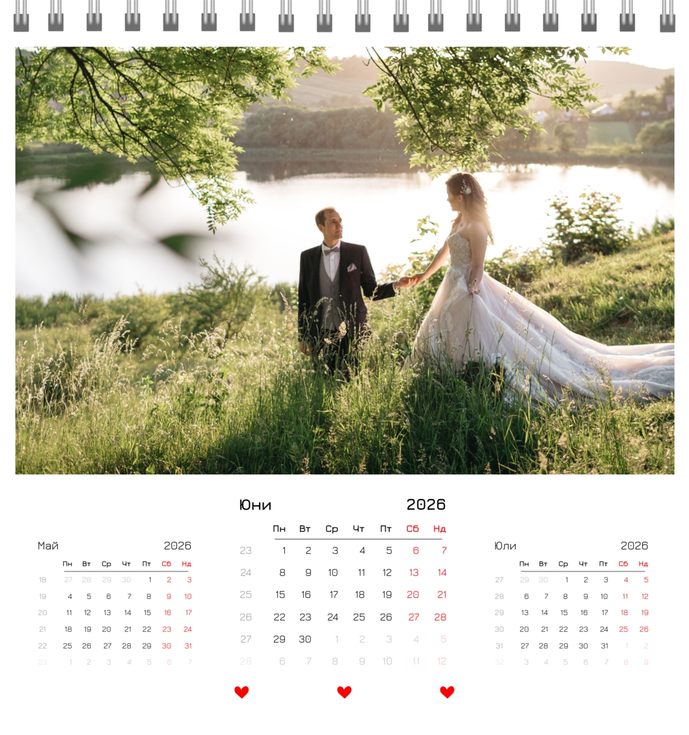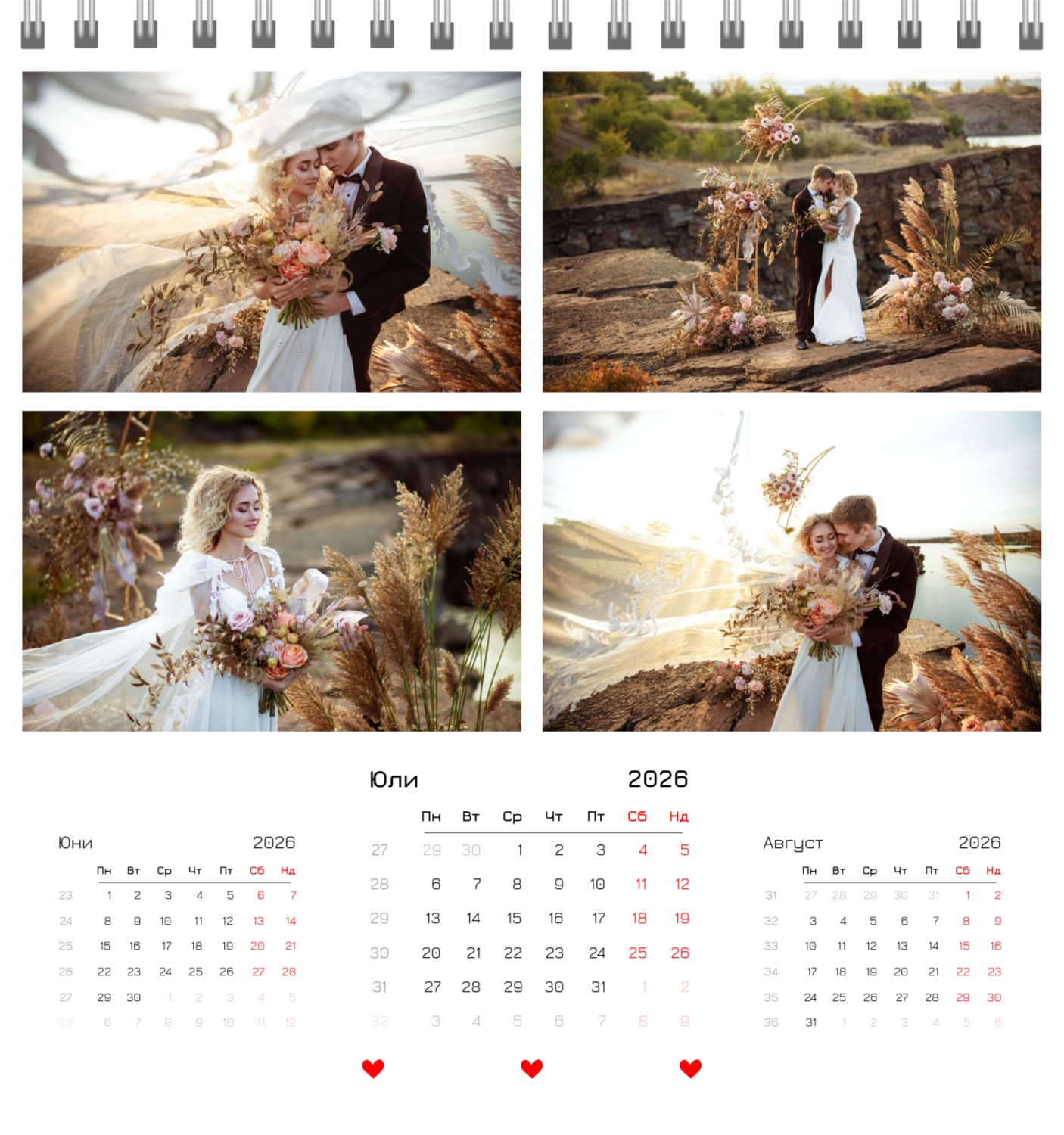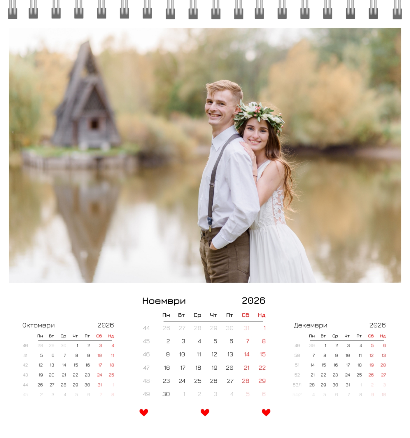 Безплатен шаблон за настолен сватбен календар-къща онлайн за запомнящи се моменти. Създайте оформление "направи си сам" в онлайн конструктора на календари.