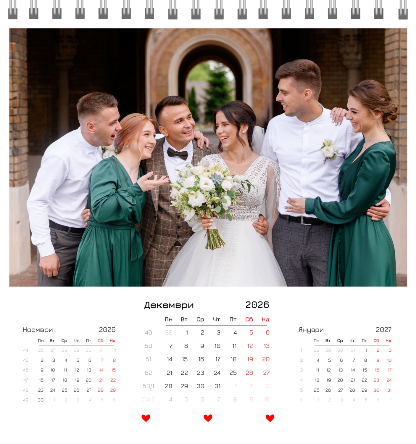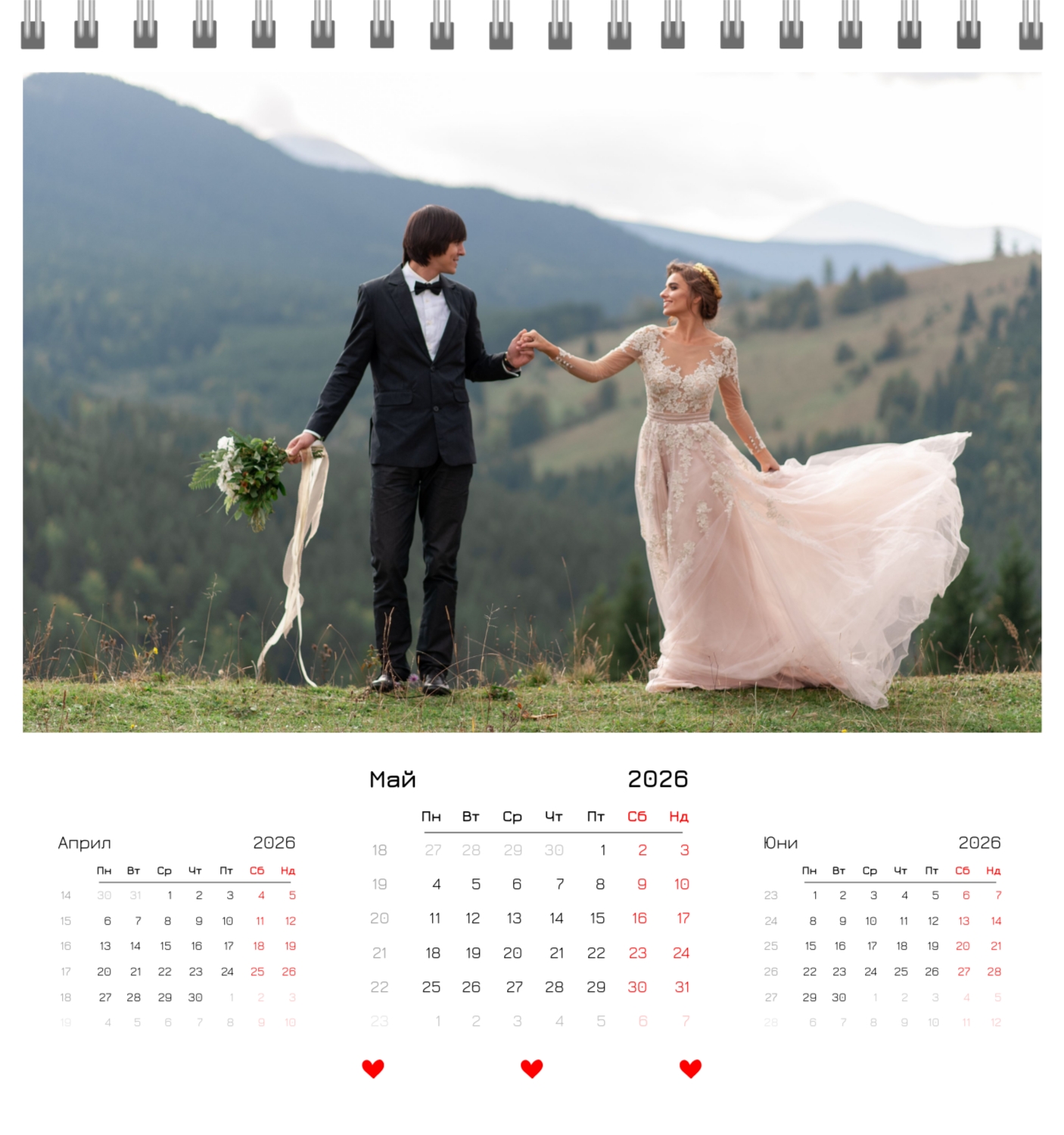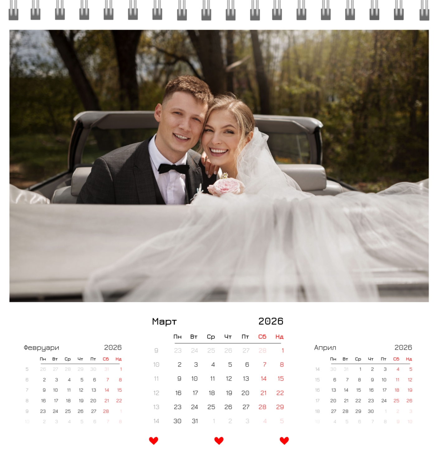 Безплатен шаблон за настолен сватбен календар-къща онлайн за запомнящи се моменти. Създайте оформление "направи си сам" в онлайн конструктора на календари.
