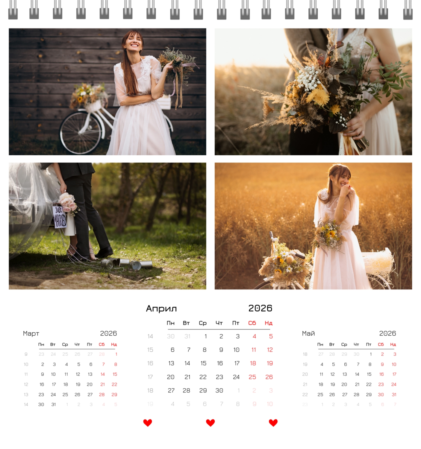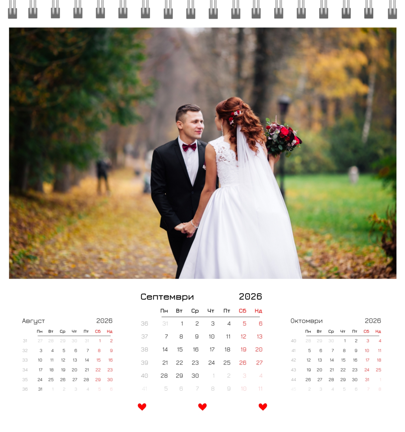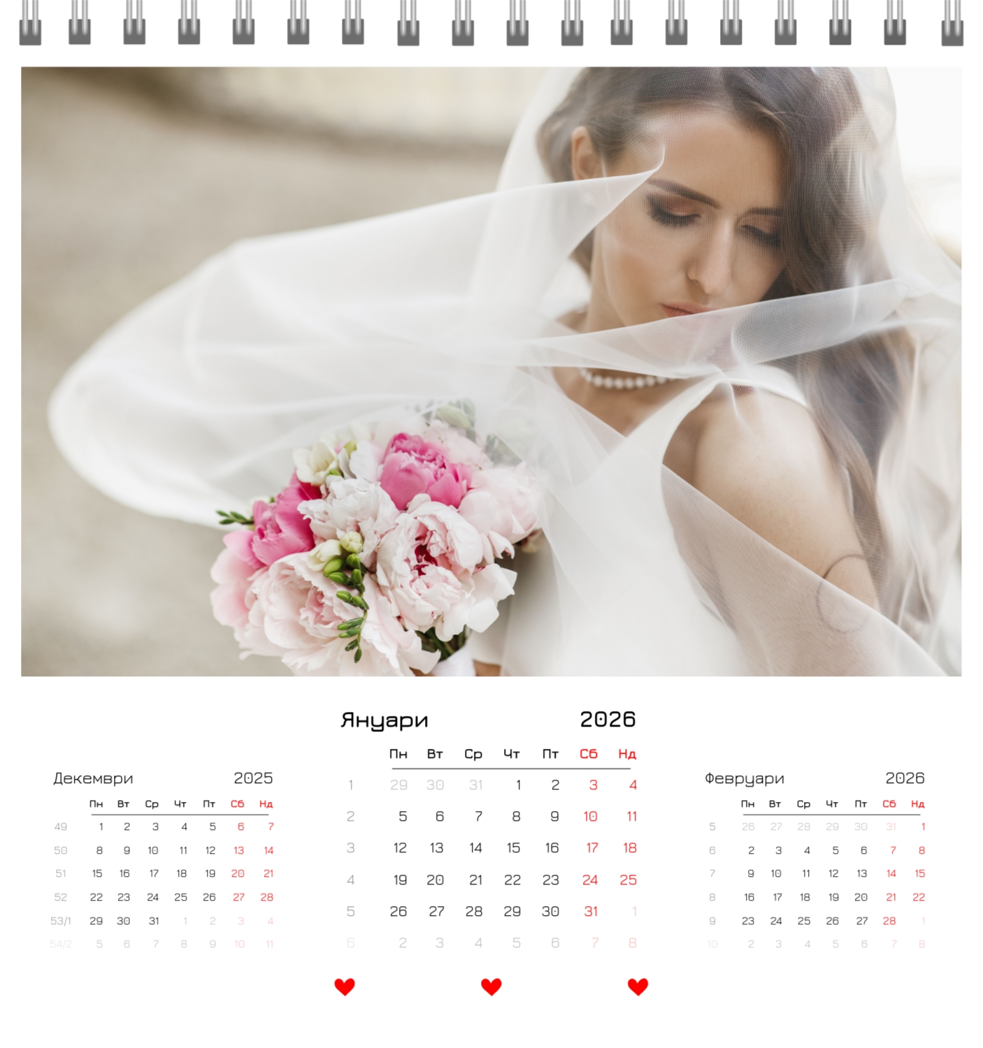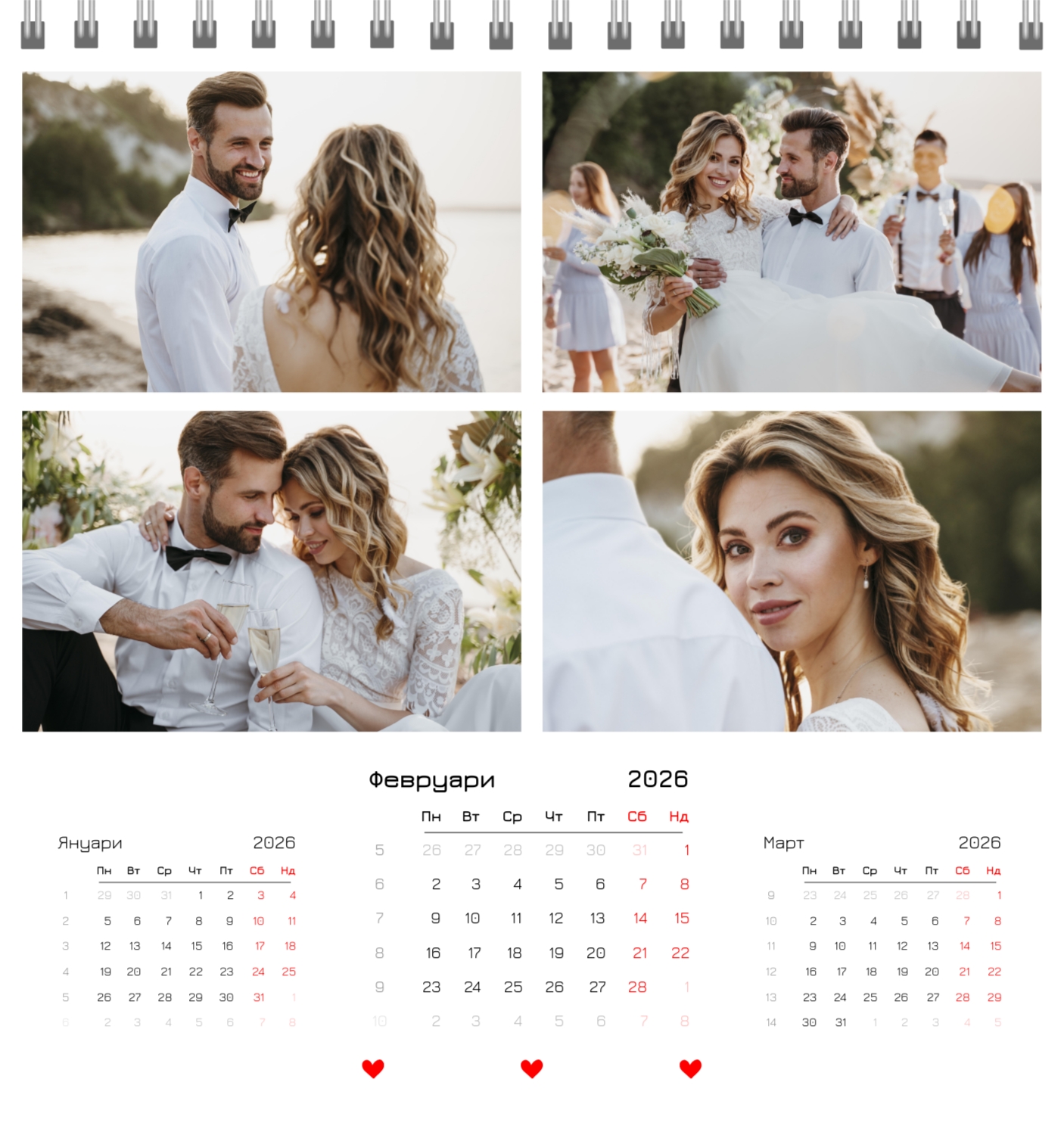 Безплатен шаблон за настолен сватбен календар-къща онлайн за запомнящи се моменти. Създайте оформление "направи си сам" в онлайн конструктора на календари.