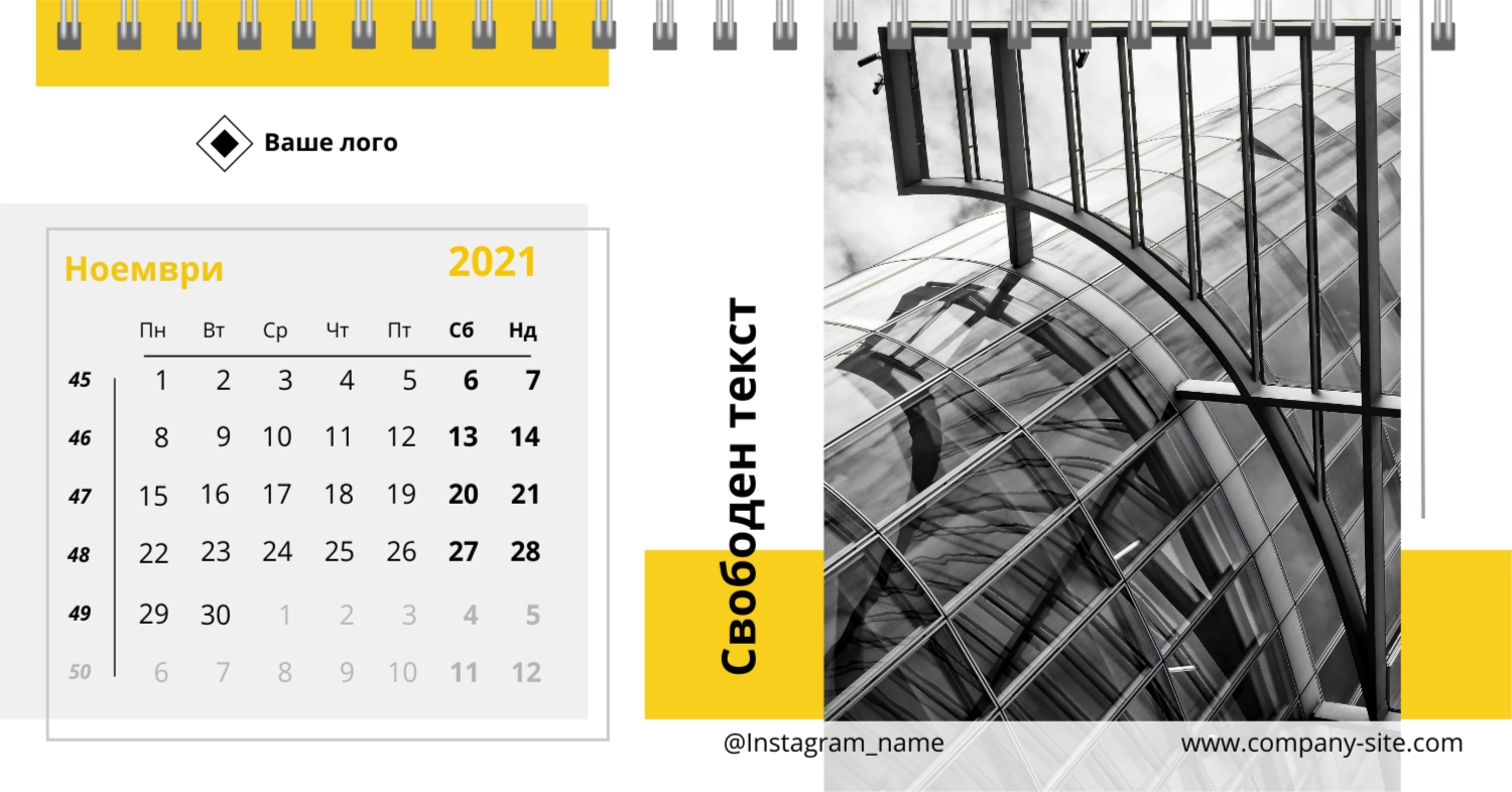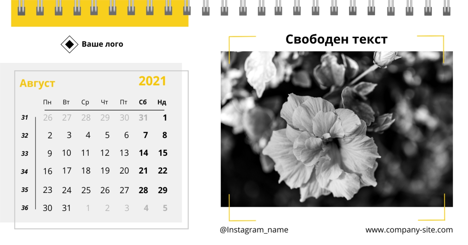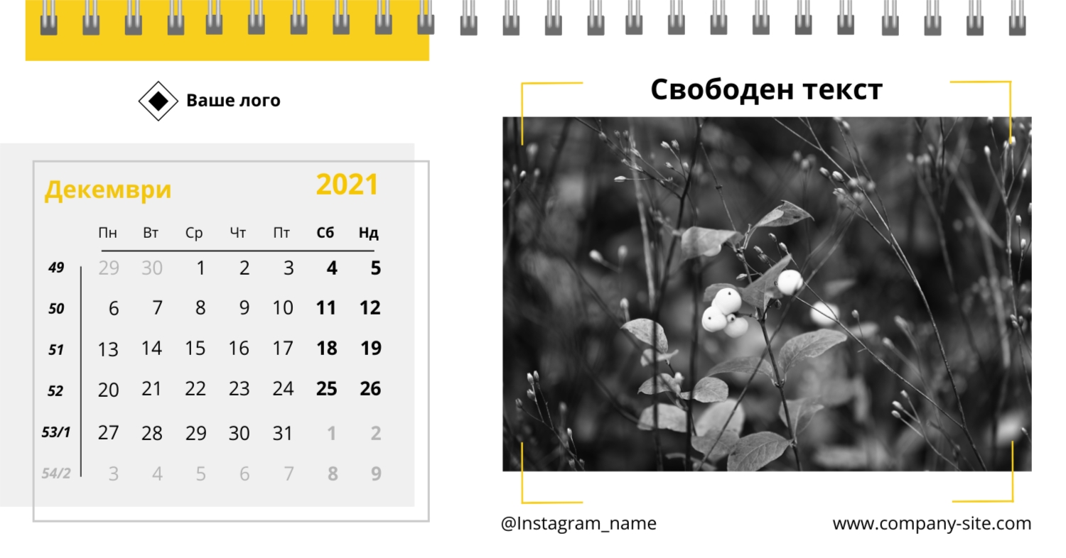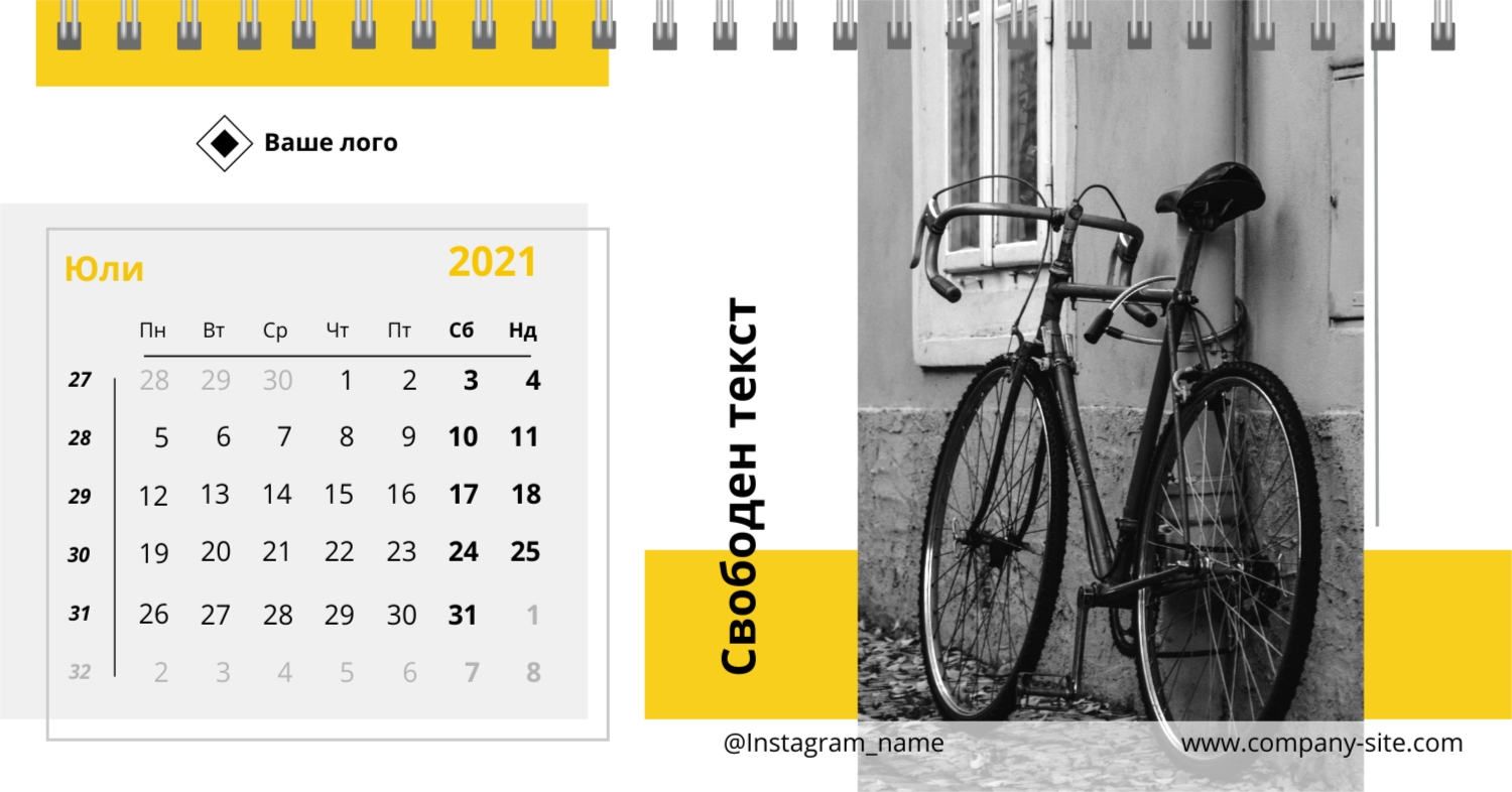 Безплатен шаблон за календар-къща за обръщане онлайн с портфолио за фотостудии и фотографи с възможност за редактирането му в конструктора на календари.