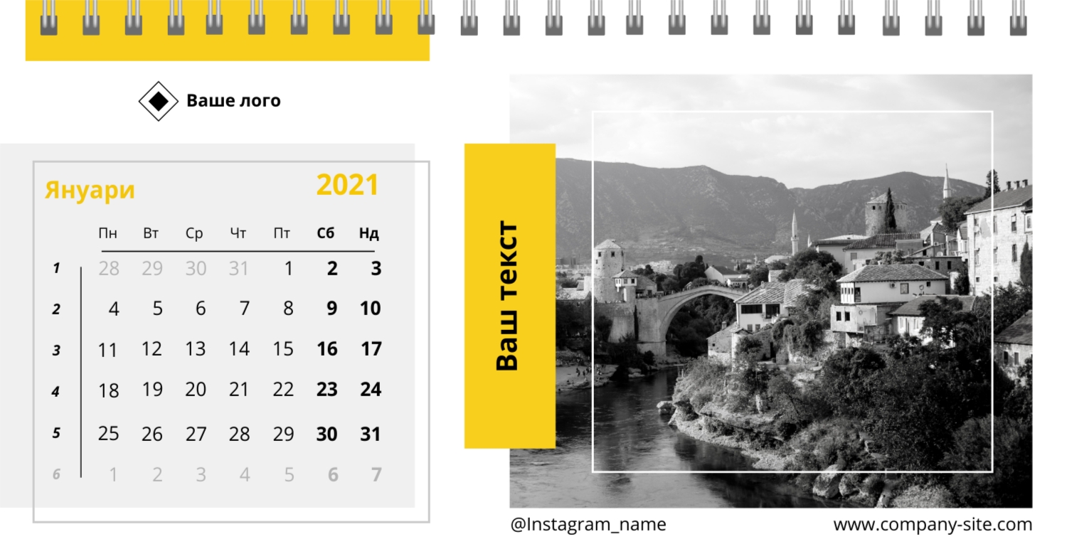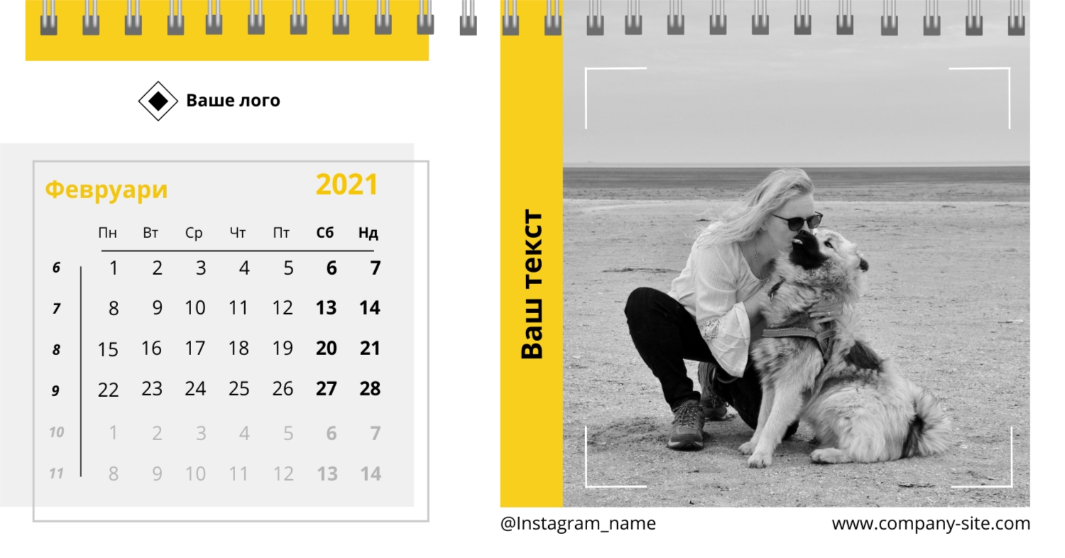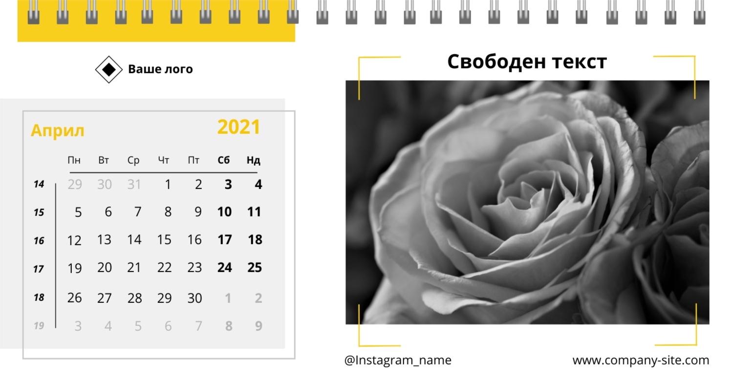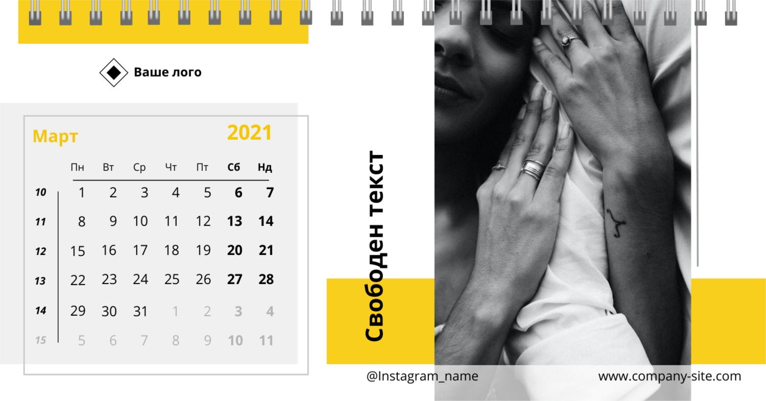 Безплатен шаблон за календар-къща за обръщане онлайн с портфолио за фотостудии и фотографи с възможност за редактирането му в конструктора на календари.