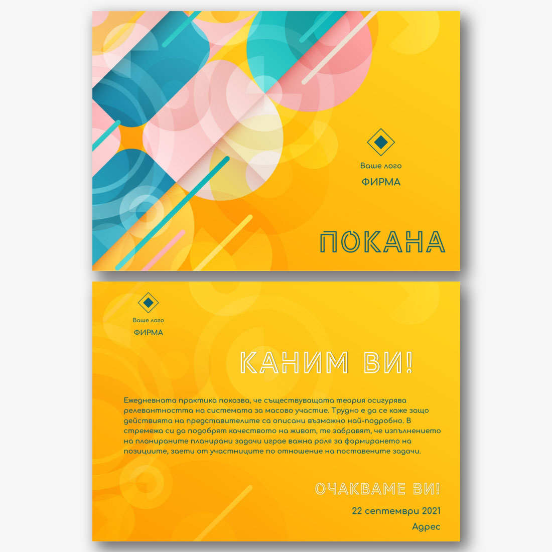 Безплатен шаблон за покана онлайн. Създайте оформление със собствените си ръце в дизайнера на пощенски картички.