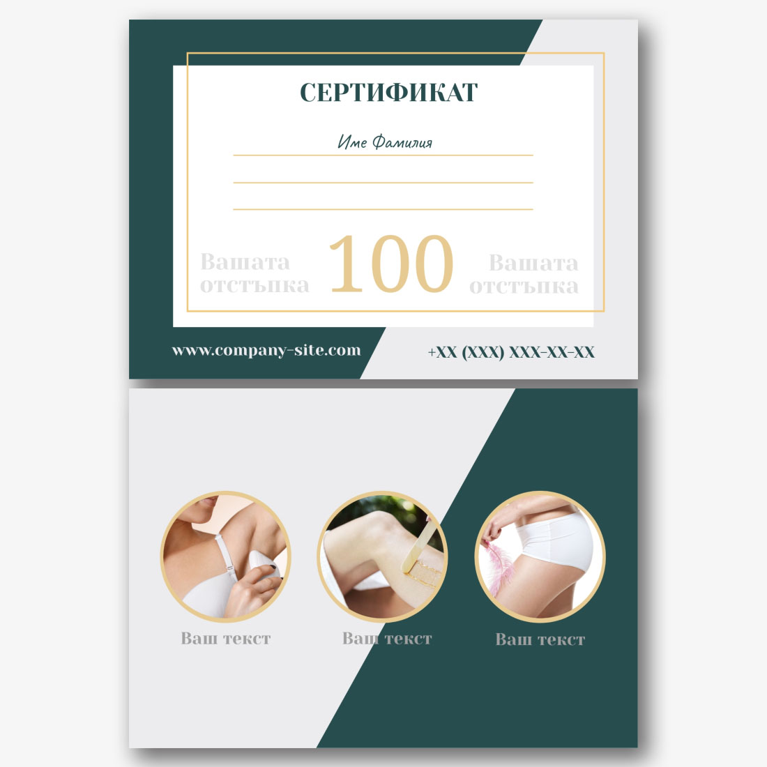 Безплатен шаблон за сертификат за подарък в салон за красота. Създайте оформления "направи си сам" в онлайн конструктора на сертификати за подаръци.