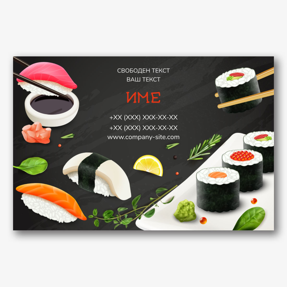 Безплатен шаблон за винилов магнит за услуга за доставка на суши, суши ресторант. Създайте оформление "направи си сам" в онлайн дизайнер на винилови магнити.