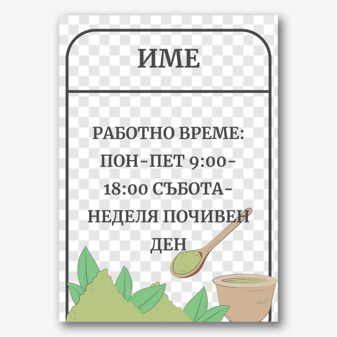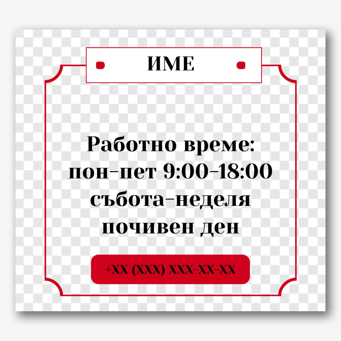 Безплатен шаблон за прозрачна табела за режим на работа. Създайте оформление със собствените си ръце в онлайн конструктора на таблети.