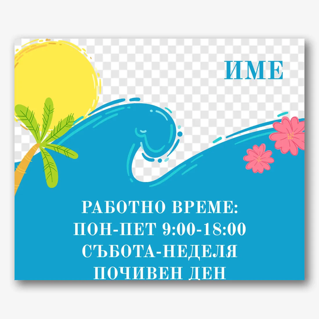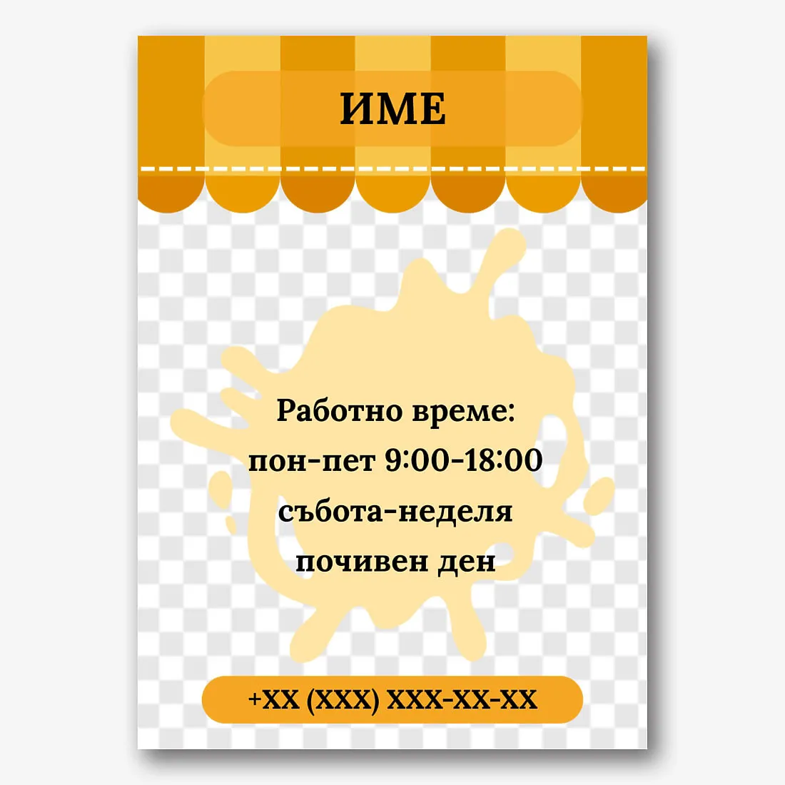Безплатен шаблон за прозрачна табела за режим на работа за магазин за чай. Създайте оформление със собствените си ръце в онлайн конструктора на таблети.