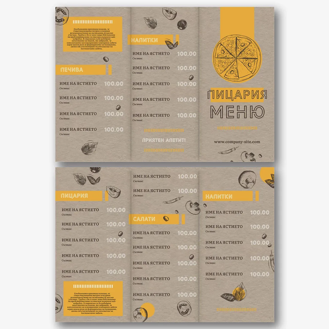 Безплатен шаблон за меню за Кафене, закусвалня, Ресторант. Създайте оформление със собствените си ръце в онлайн конструктора на менюта.