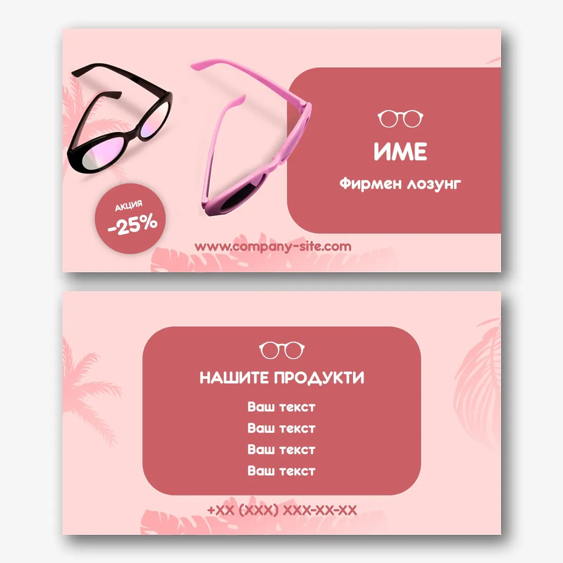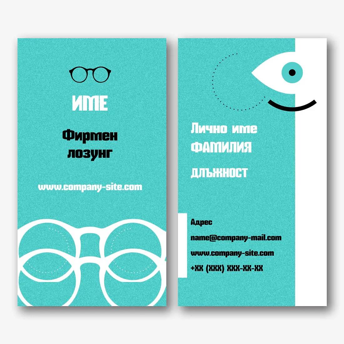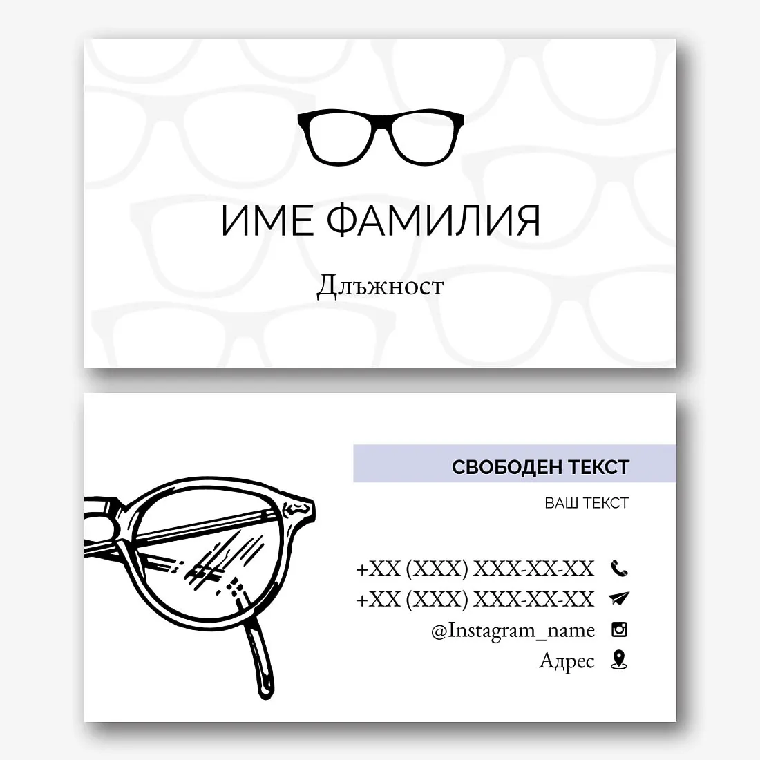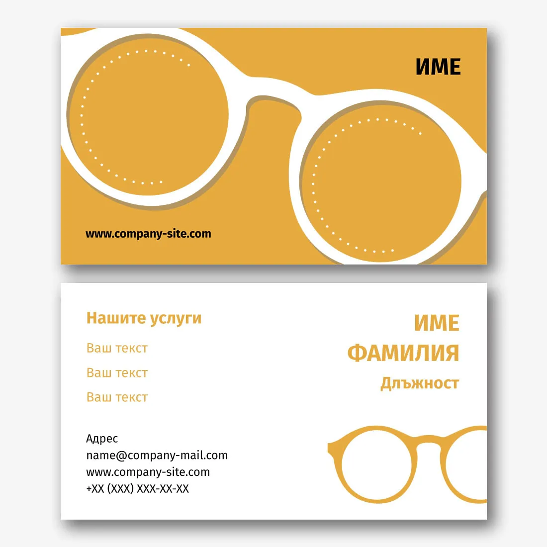 Безплатен шаблон за визитка за магазин за оптика. Създайте оформление на визитка със собствените си ръце в дизайнера на визитки.