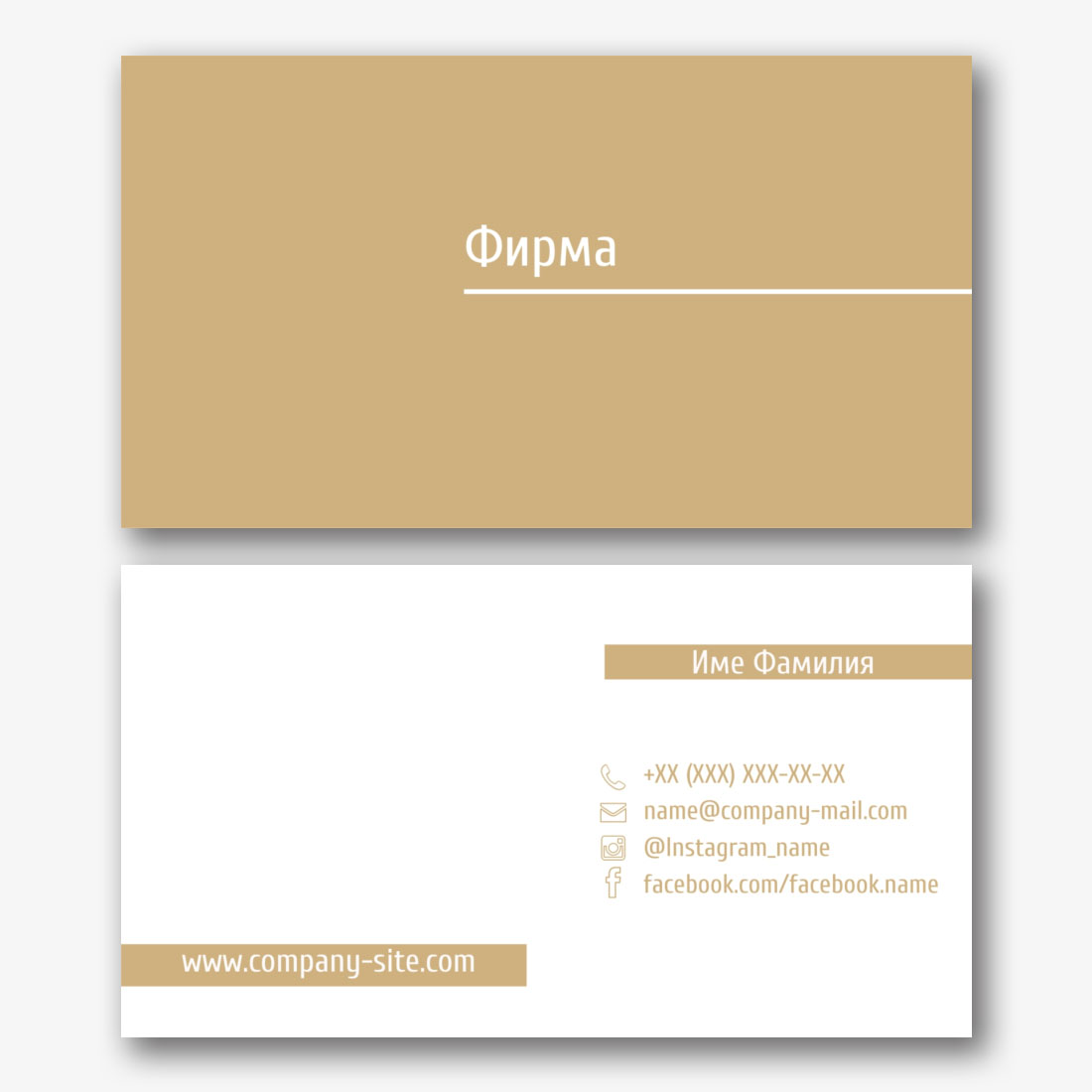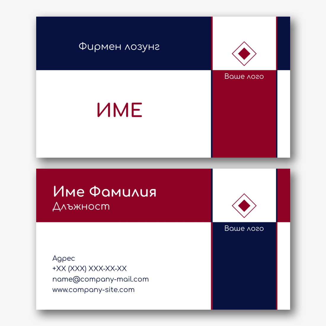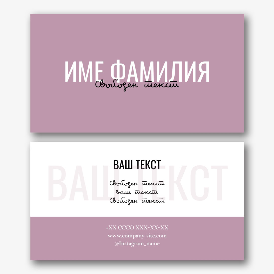 Безплатен шаблон за универсална визитка в лаконичен дизайн. Създайте визитки със собствените си ръце в онлайн създателя на визитки.