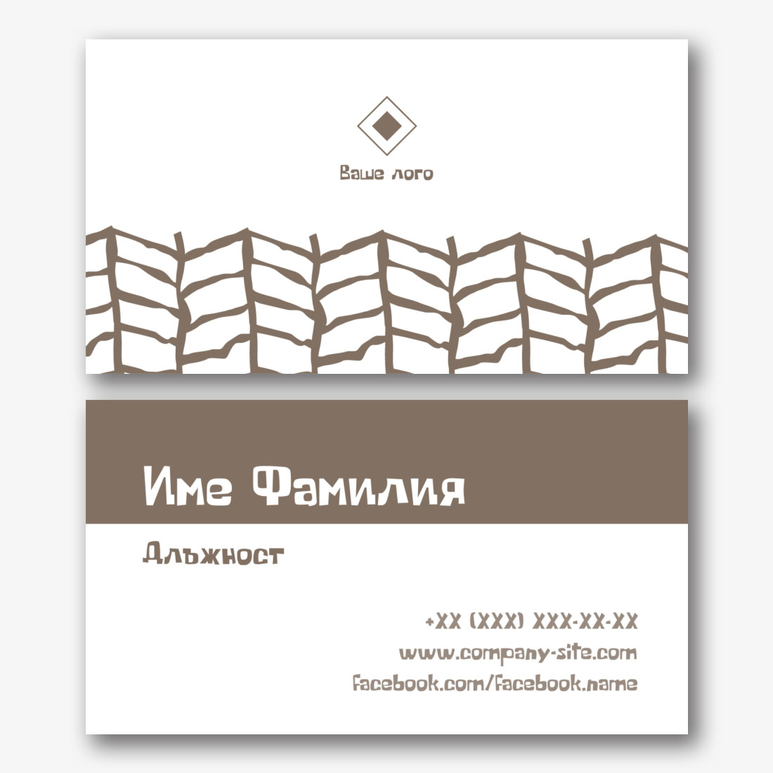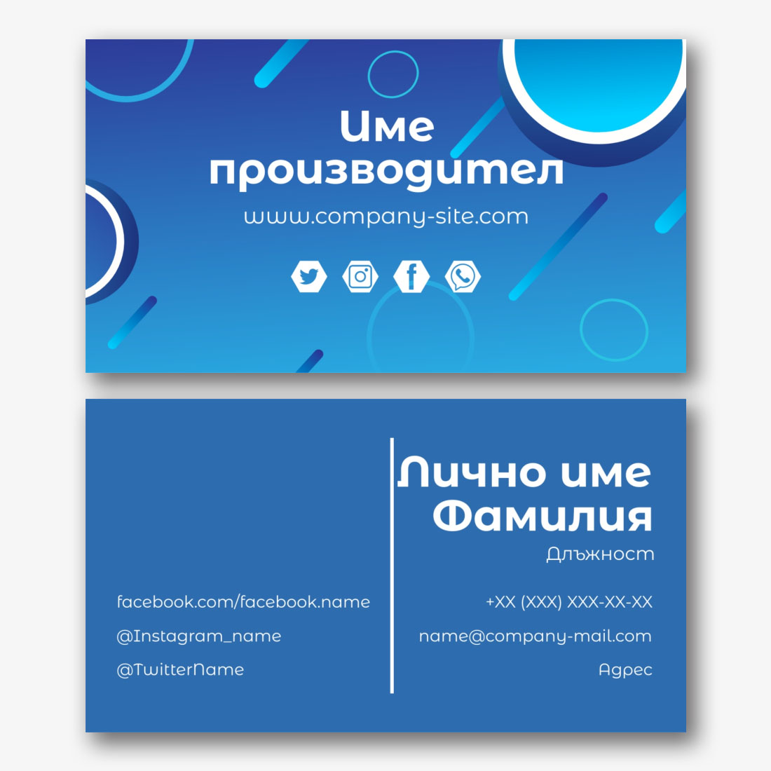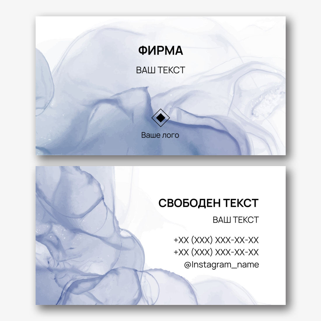 Безплатен шаблон за универсална визитка в лаконичен дизайн. Създайте визитки със собствените си ръце в онлайн създателя на визитки.