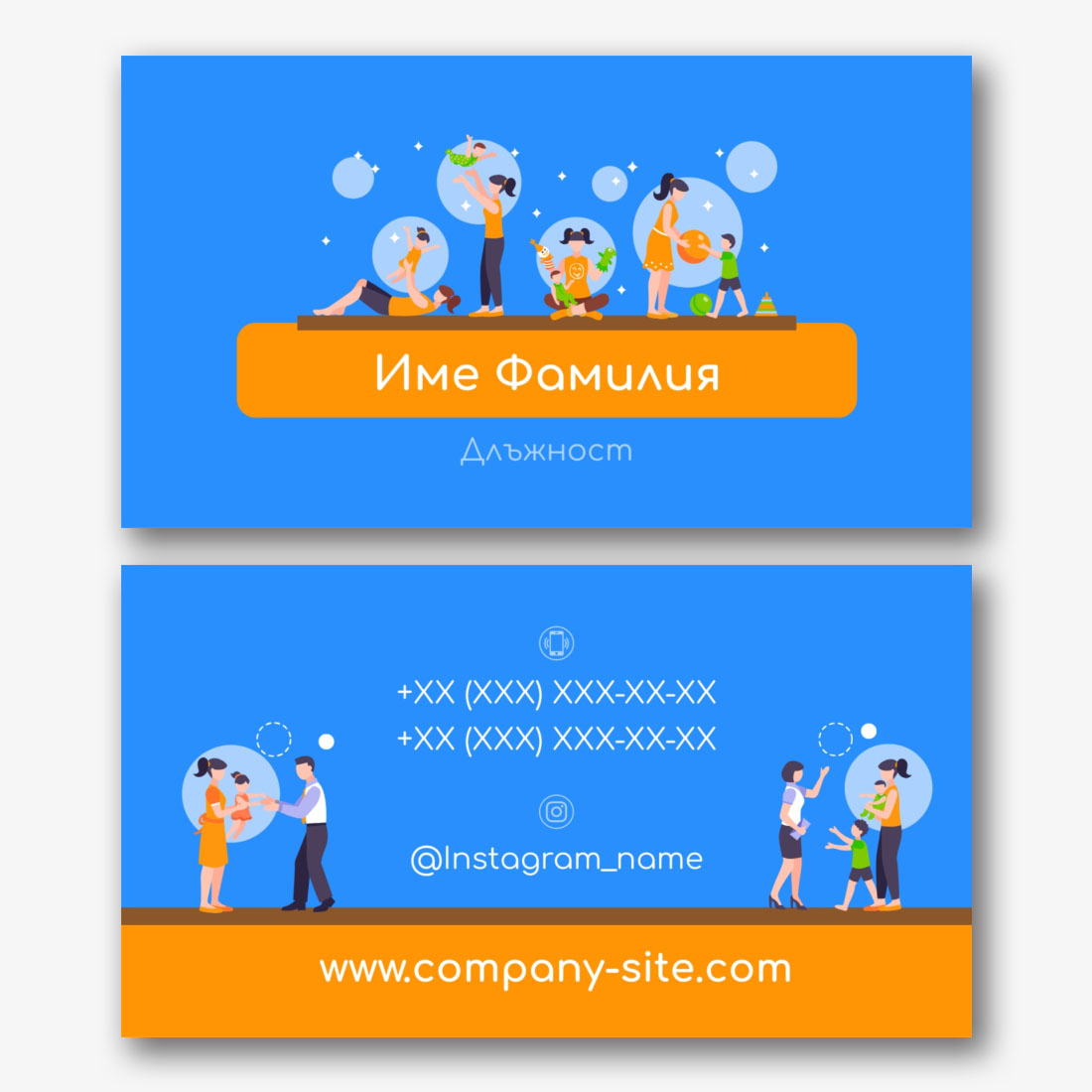 Безплатен шаблон за визитка за магазин за новородени, детегледачка, Частна детска градина. Създайте оформление на визитка със собствените си ръце в онлайн конструктора на визитки.