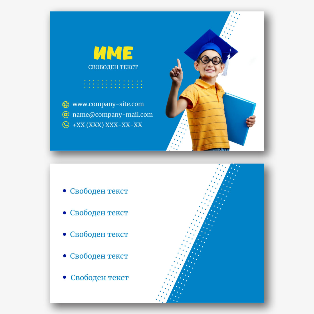 Безплатен шаблон за евро визитка за магазин за новородени, детегледачка, Частна детска градина. Създайте оформление на визитка със собствените си ръце в онлайн конструктора на визитки.