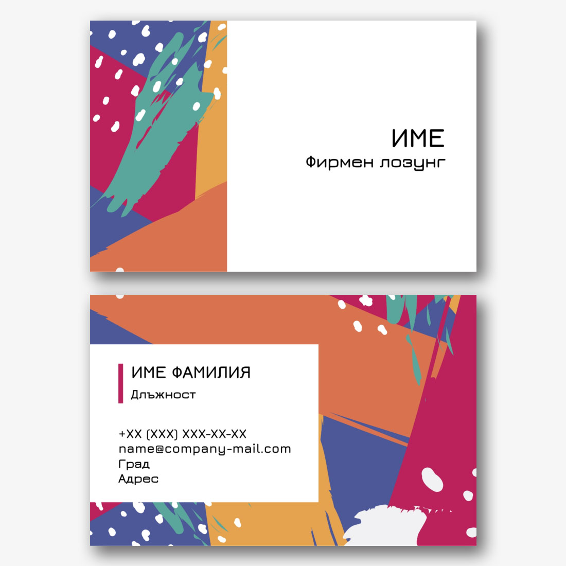 Безплатен шаблон за ярка, абстрактна евро визитка за представители на компании, директори, мениджъри. Създайте оформление на визитка със собствените си ръце в онлайн конструктора на визитки.
