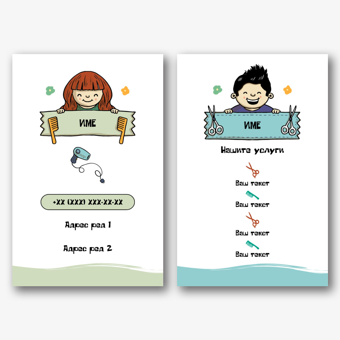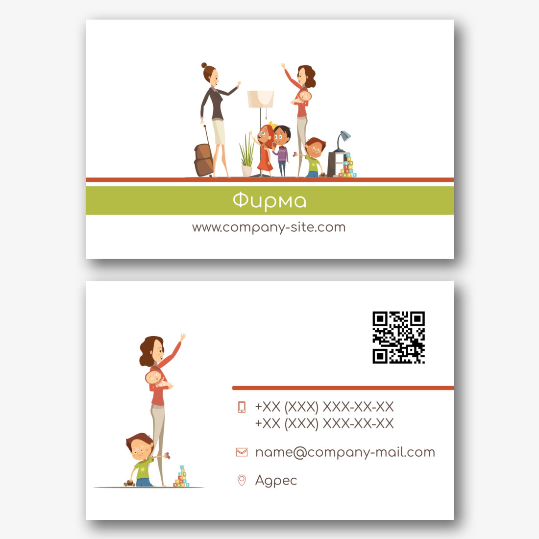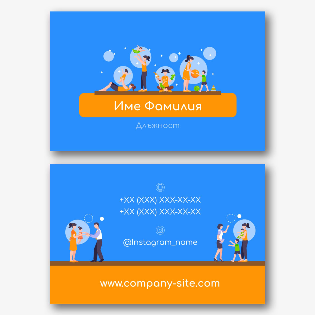 Безплатен шаблон за детска евро визитка за магазин, Частна детска градина, детегледачка, детски център. Създайте визитки със собствените си ръце в онлайн създателя на визитки.