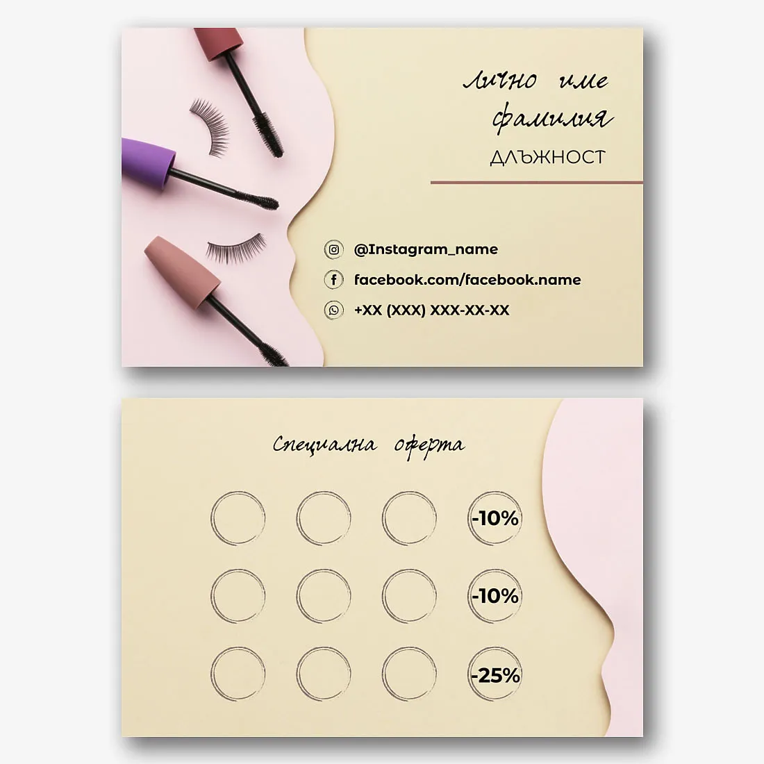 Безплатен шаблон за лична евро визитка на майстор Маникюрист. Създайте оформление на визитка със собствените си ръце в онлайн конструктора на визитки.