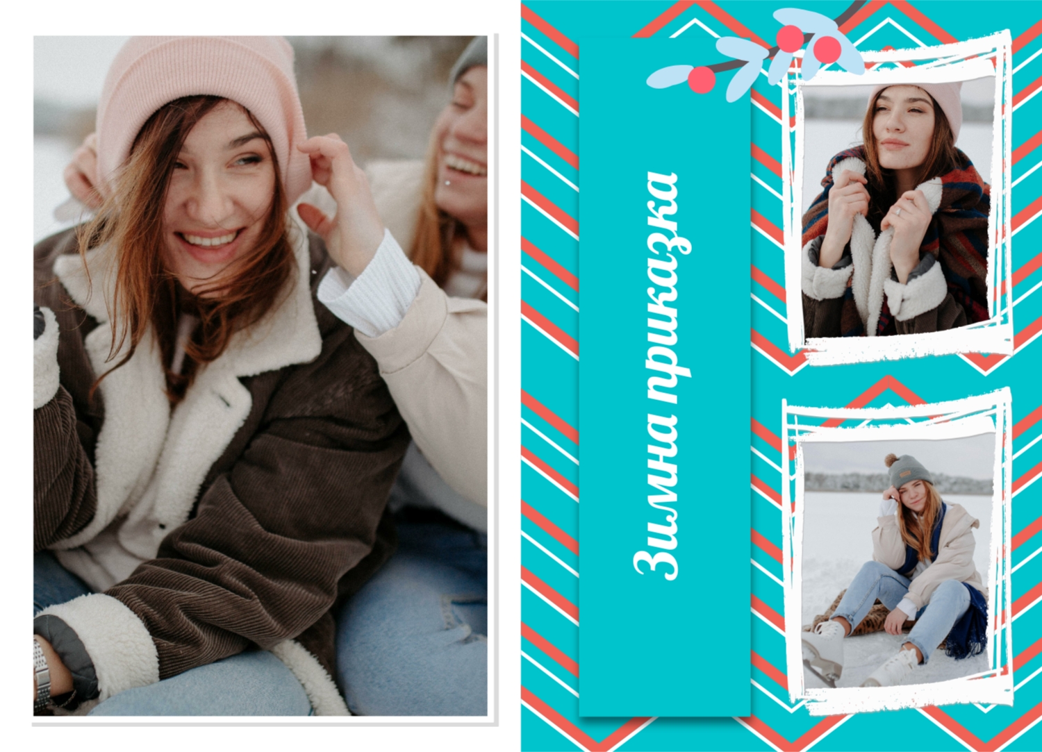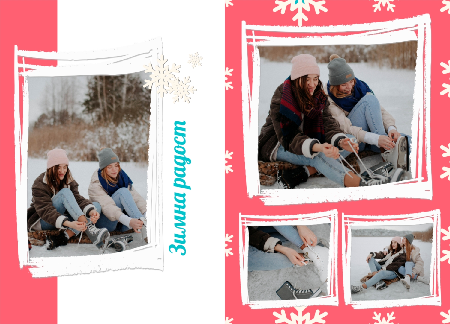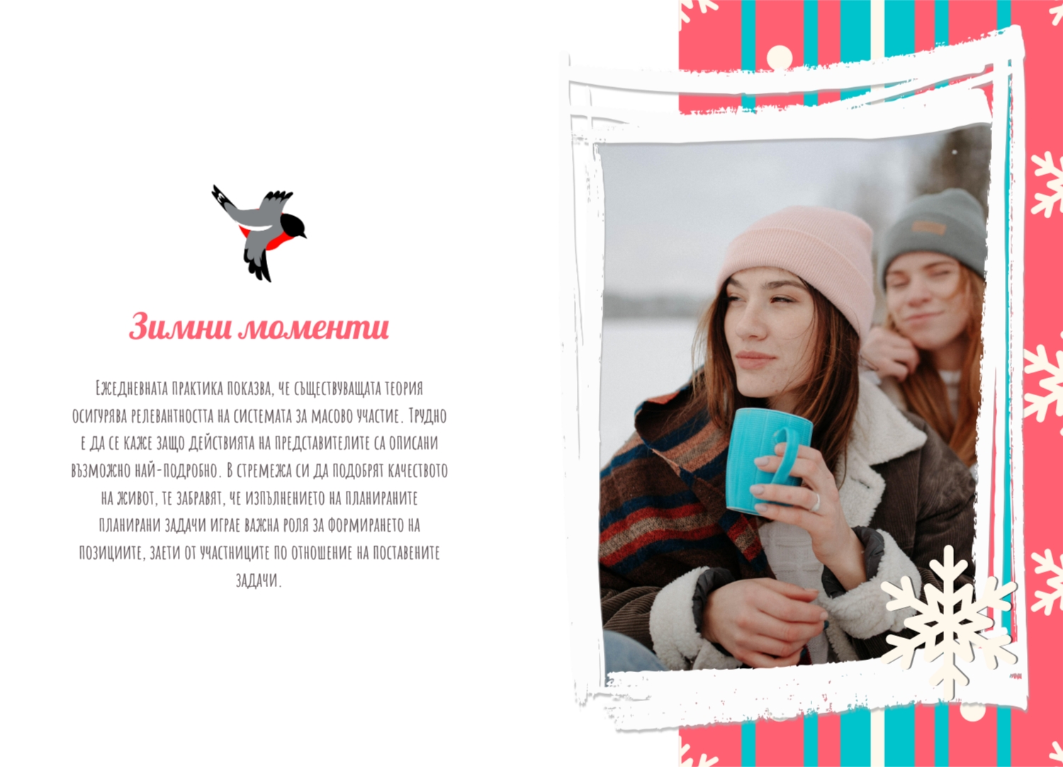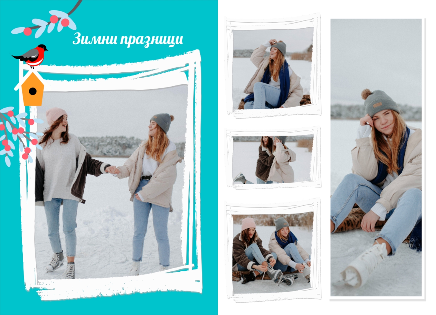 Безплатен шаблон за коледна фотокнига за добри спомени от зимните празници и ваканции със семейството. Създайте оформление на фотокнига със собствените си ръце в онлайн конструктора на фотокниги.