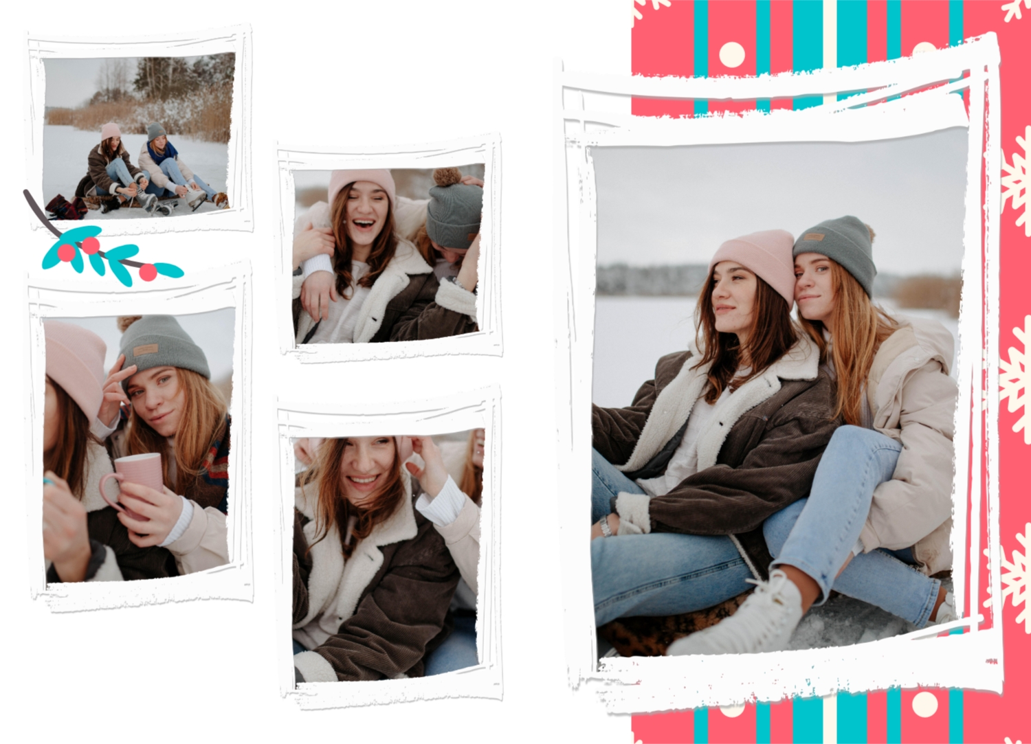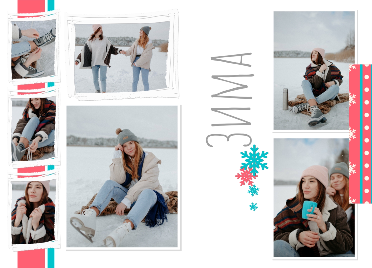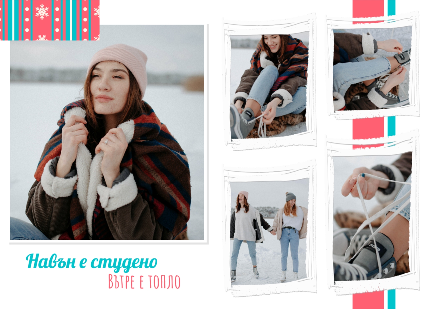 Безплатен шаблон за коледна фотокнига за добри спомени от зимните празници и ваканции със семейството. Създайте оформление на фотокнига със собствените си ръце в онлайн конструктора на фотокниги.