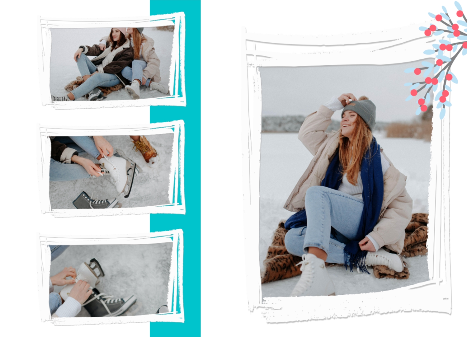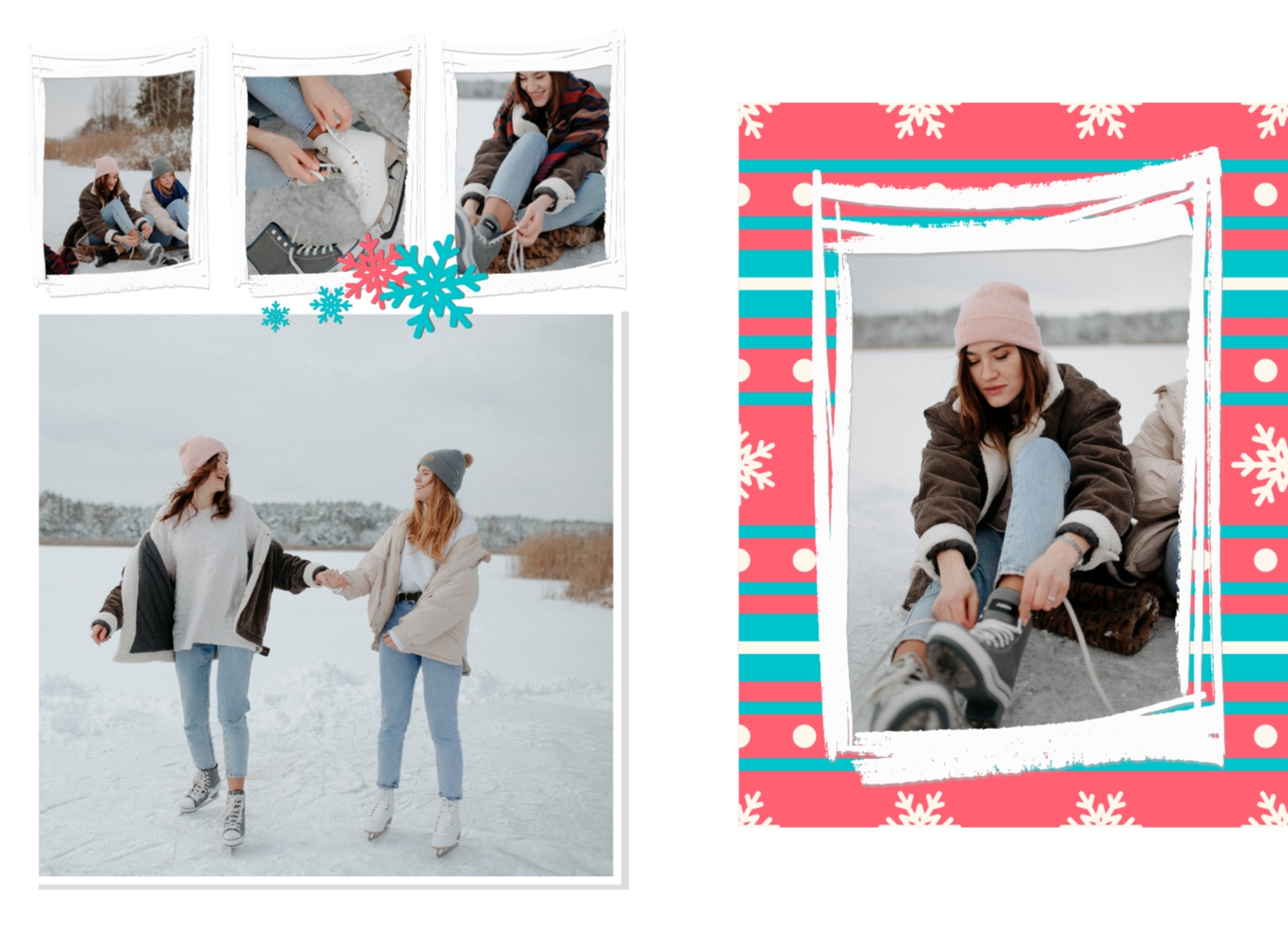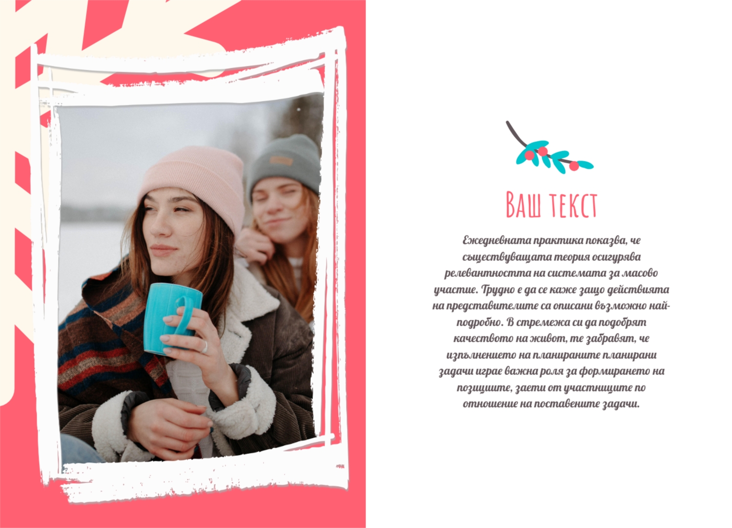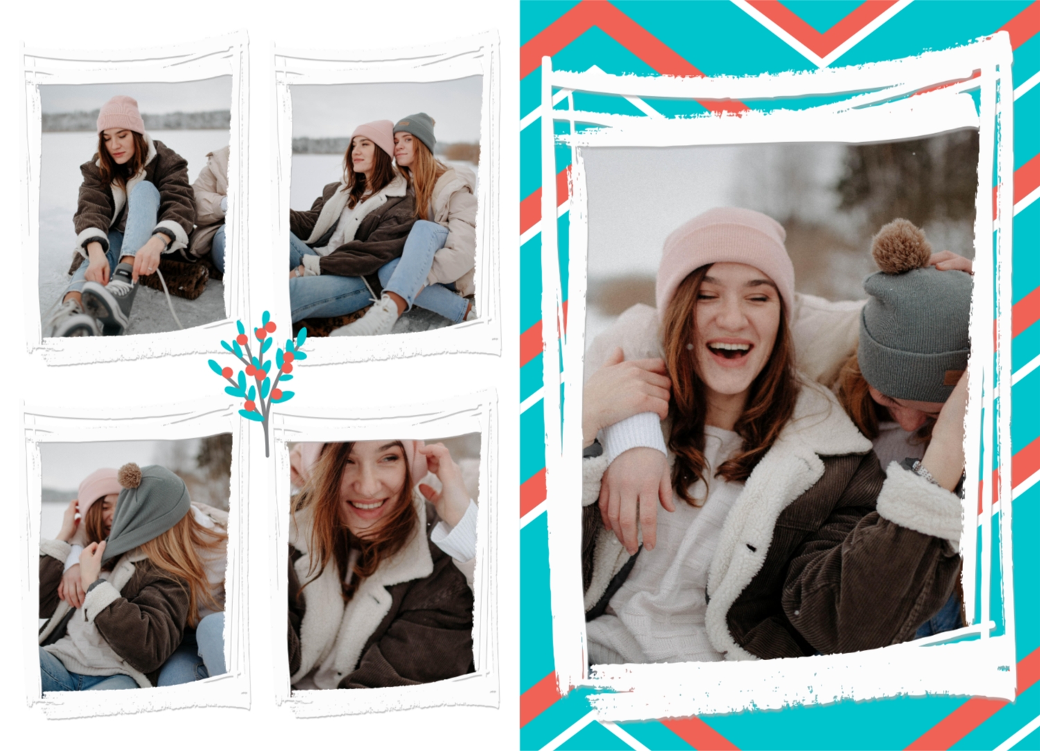 Безплатен шаблон за коледна фотокнига за добри спомени от зимните празници и ваканции със семейството. Създайте оформление на фотокнига със собствените си ръце в онлайн конструктора на фотокниги.