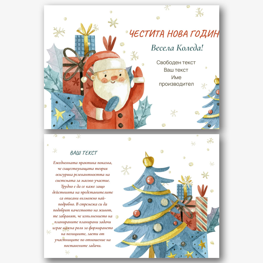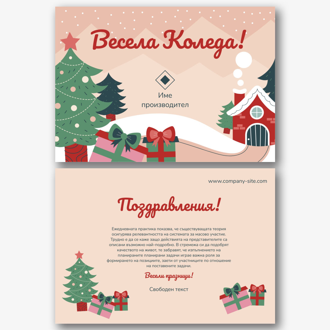 Безплатен шаблон за поздравителна картичка за Коледа и Нова година. Създайте оформление със собствените си ръце в дизайнера на пощенски картички.
