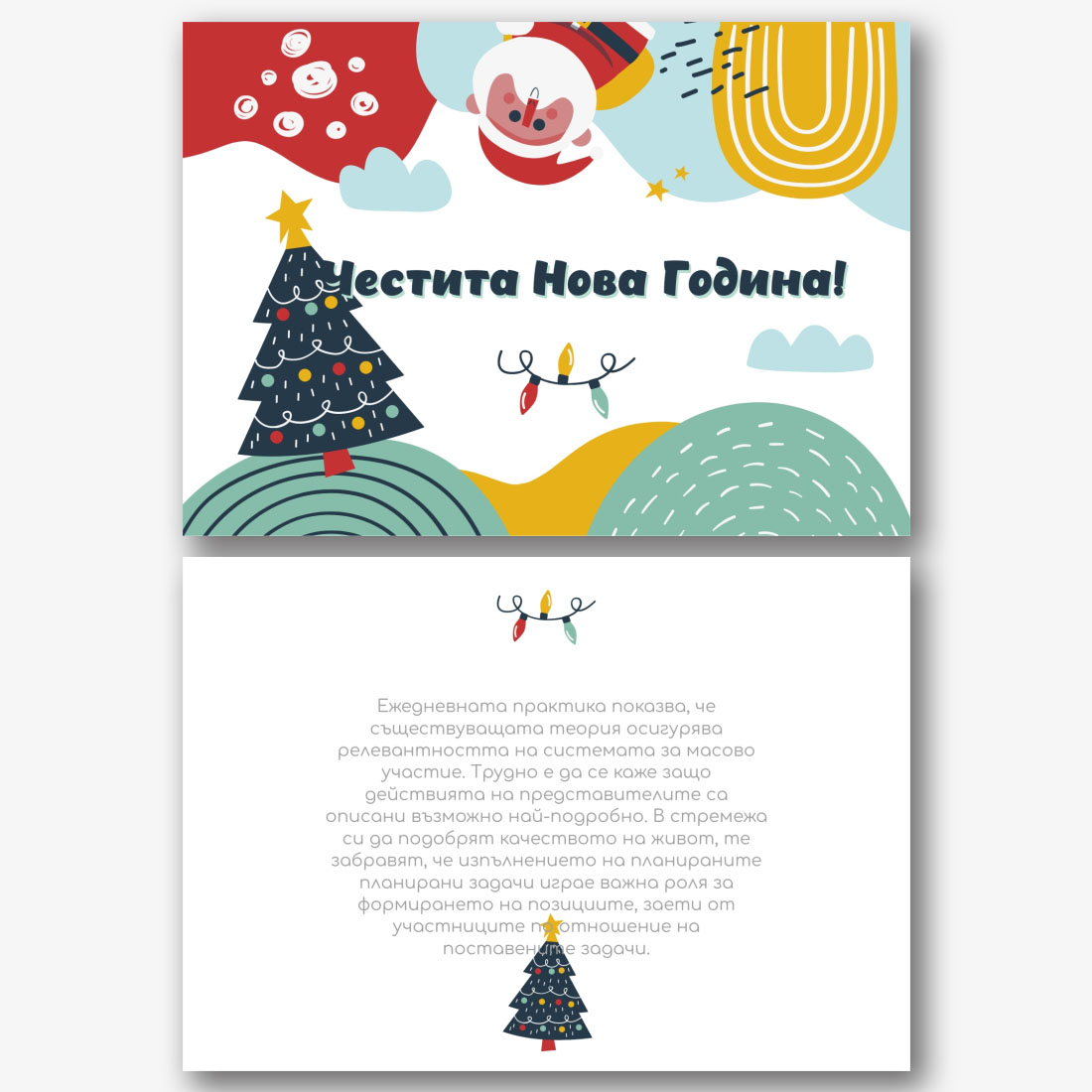 Безплатен шаблон за поздравителна картичка за Нова година и Коледа. Създайте оформление със собствените си ръце в дизайнера на пощенски картички. с коледна елха