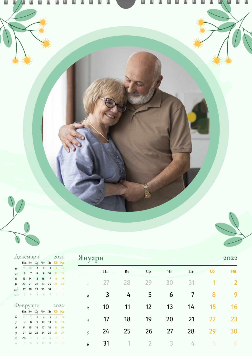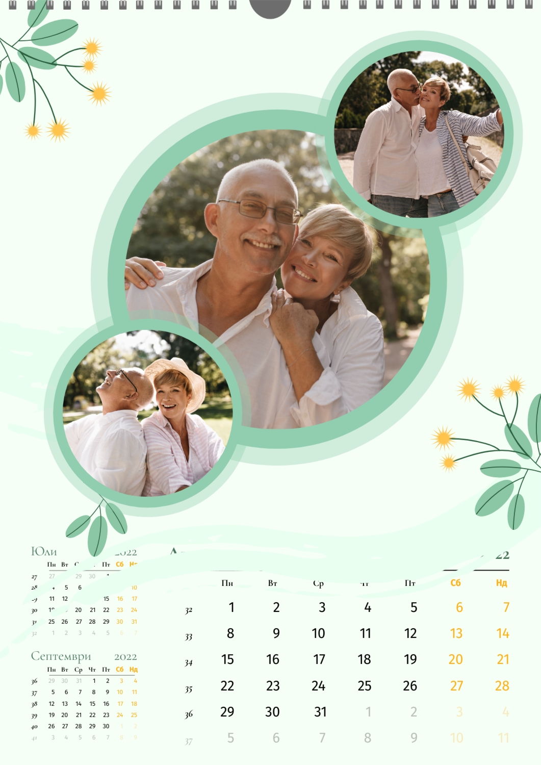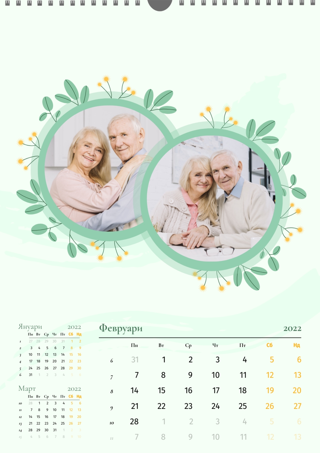 Безплатен шаблон за календар с най-добрите спомени на влюбена двойка. Създайте оформление със собствените си ръце в конструктора на календари.